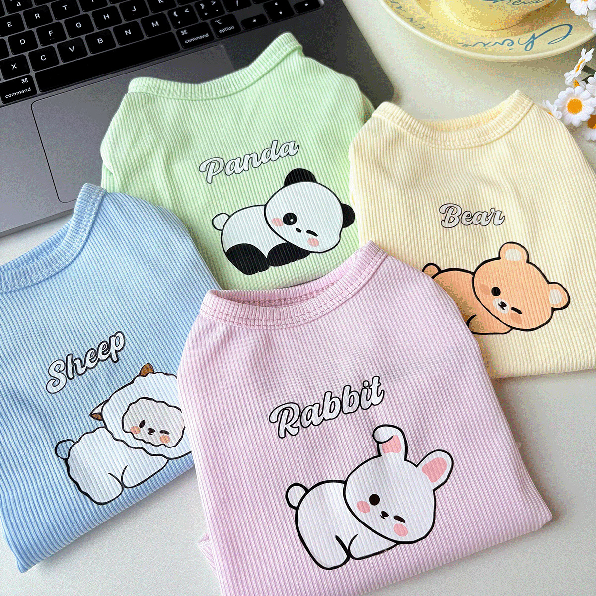 봄/여름 Ins 얇은 귀여운 동물 인쇄 애완 동물 테디 Bixiong 개 옷 작은 여름 티셔츠 기본 옷스토어 가기