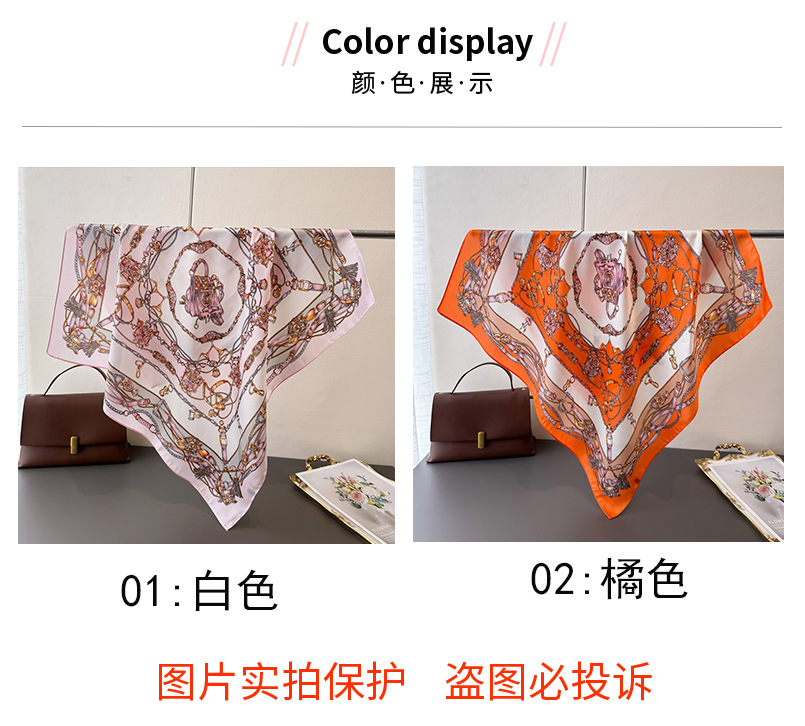 체인 잠금 버클 인쇄 실크 스카프 스퀘어 스카프 고급 목도리 모든 경기 목 작은 광장 스카프 여성용 스카프스토어 가기