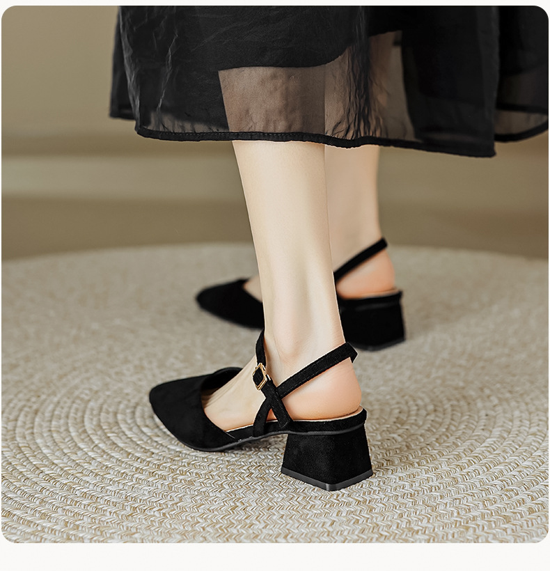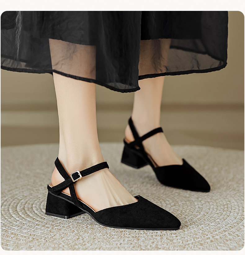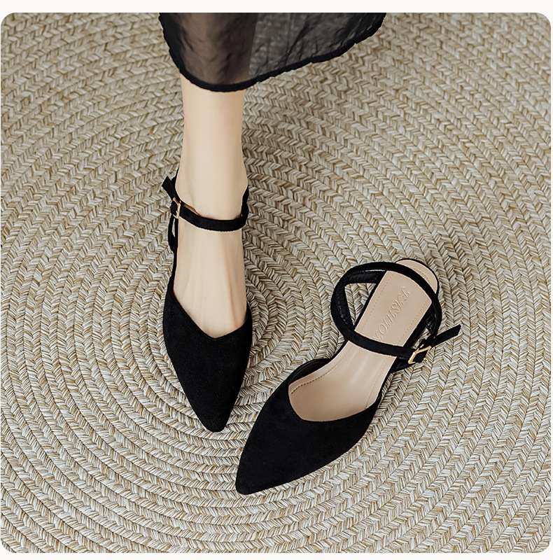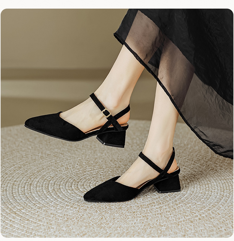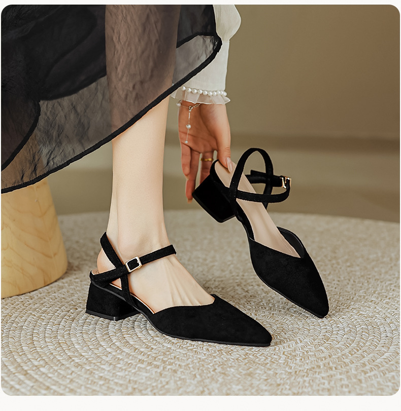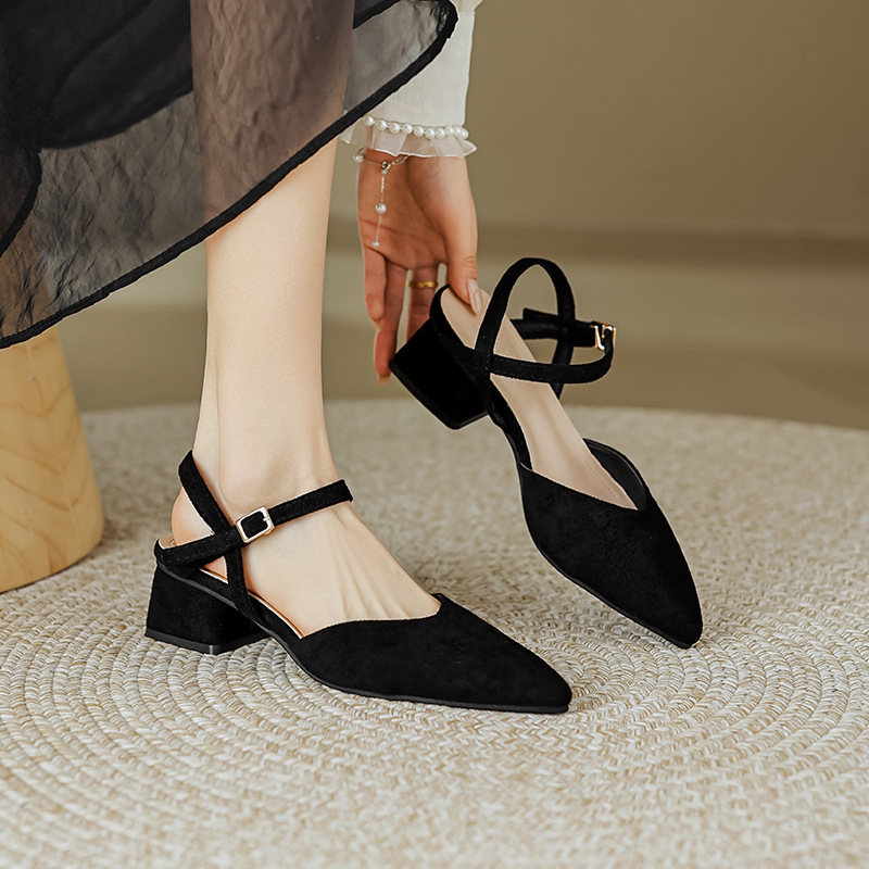 여자 2025 년 새 여름 얕은 입으로 버클 스트랩이 달린 하이힐 샌들