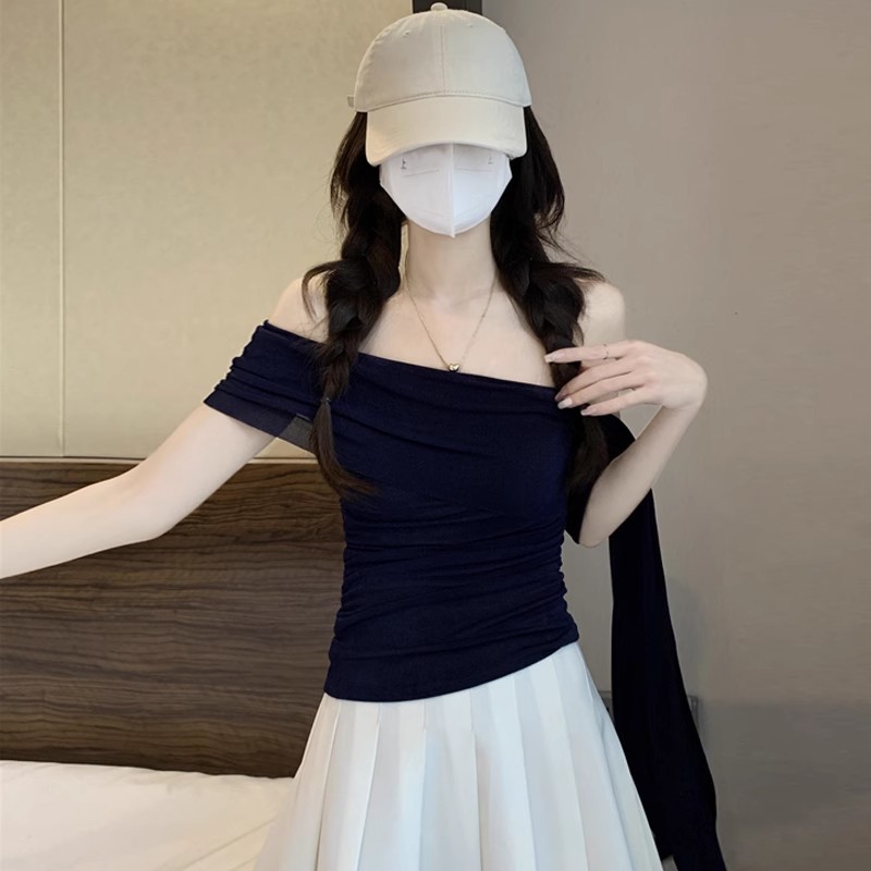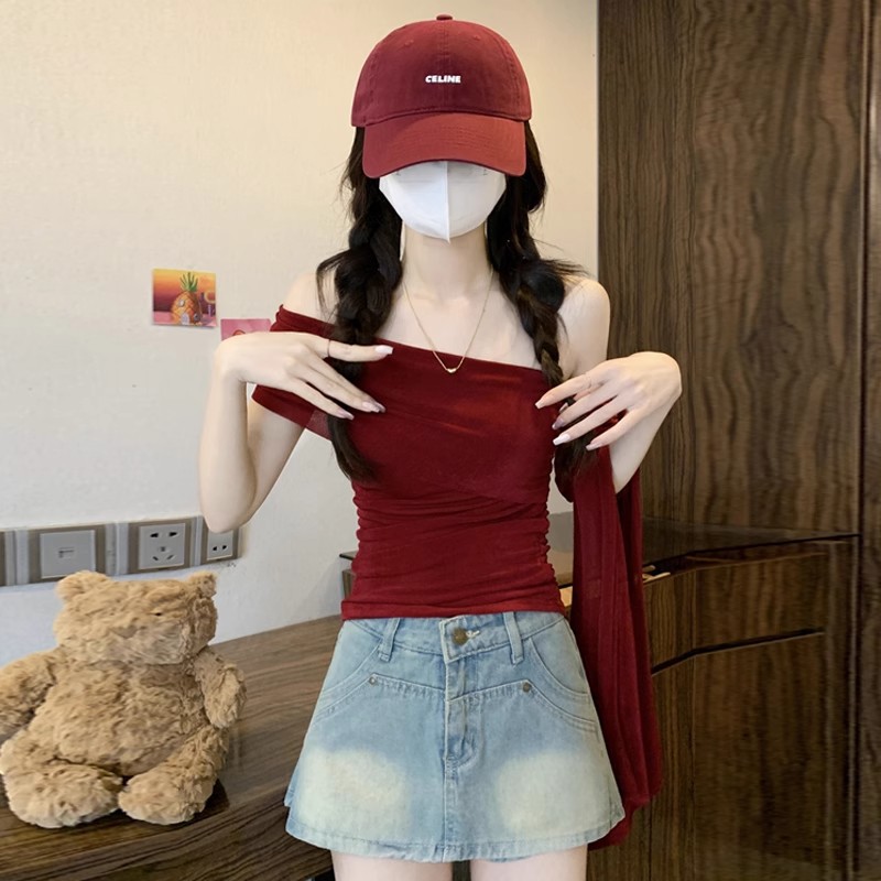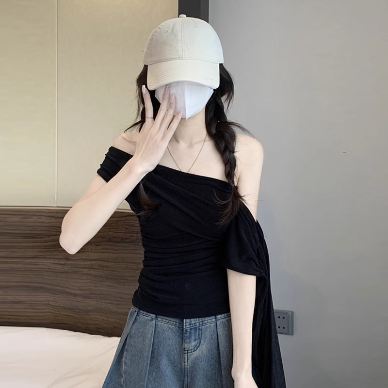 핫걸 원숄더 리본 반팔 티셔츠 여성 디자인 슬림핏 이너웨어 2025년 여름 새로운 유니크 탑