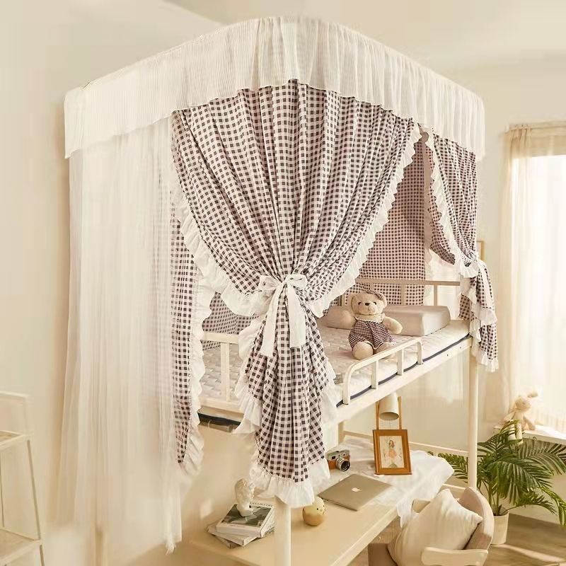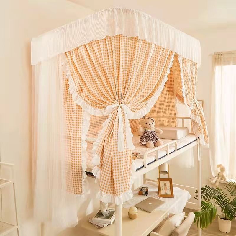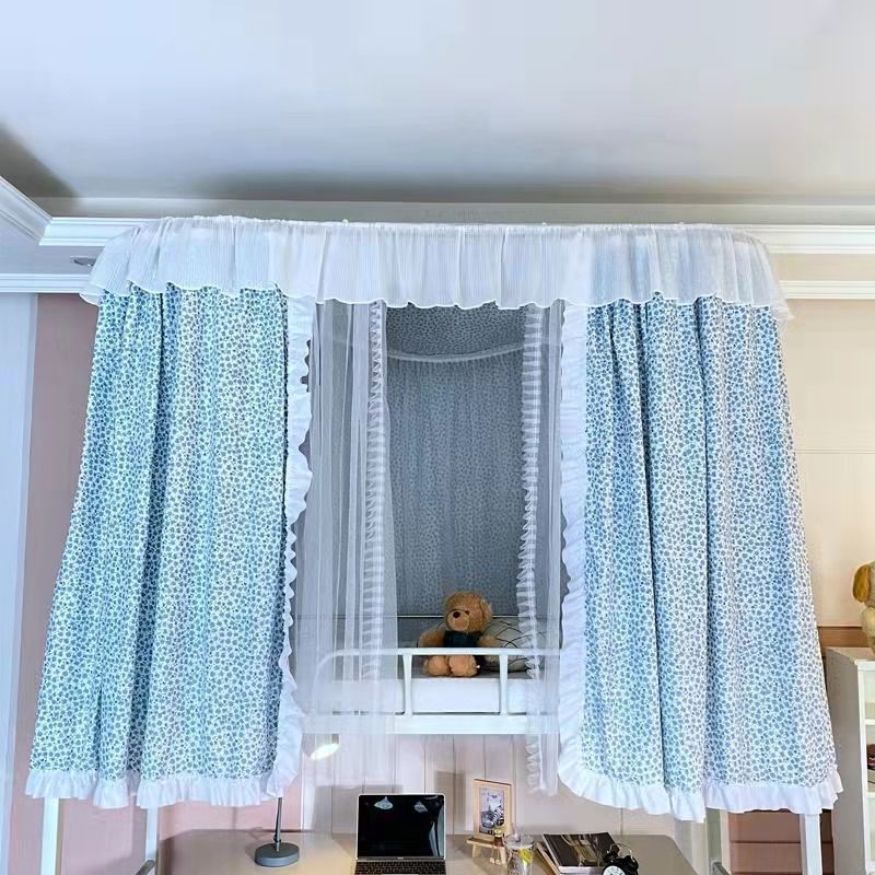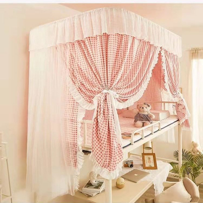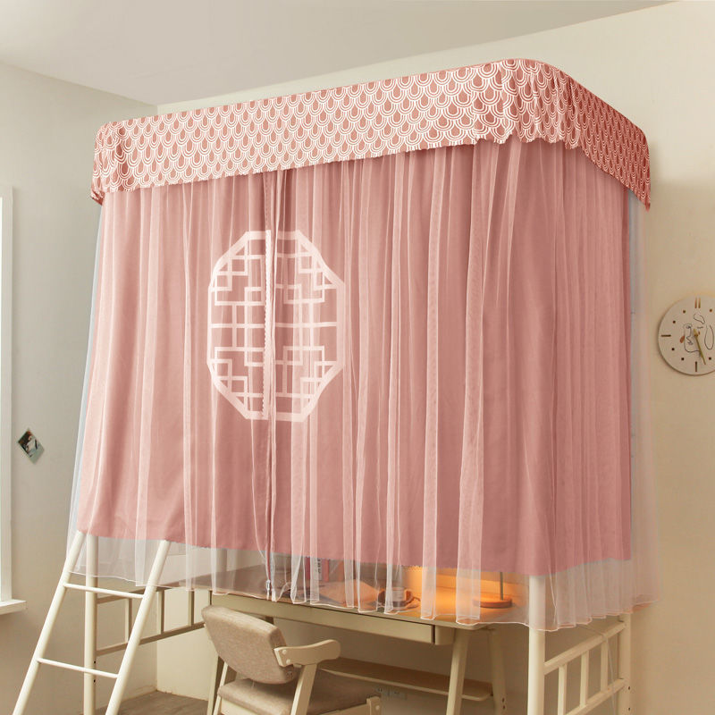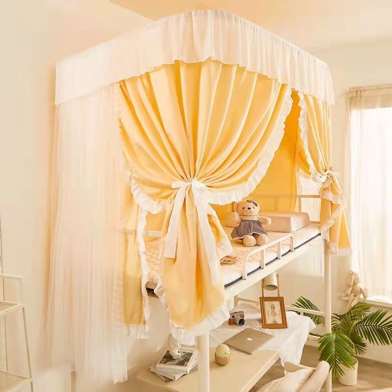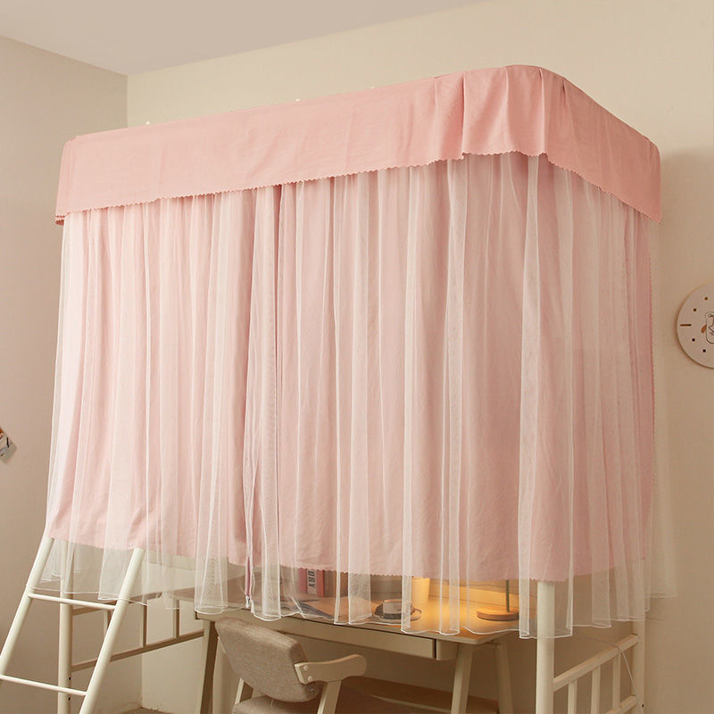상단 침대 커튼 U자형 레일 차광 모기장 학생 기숙사 이층 침대 바람 이중 거즈 커튼 여자 기숙사 침대 커튼