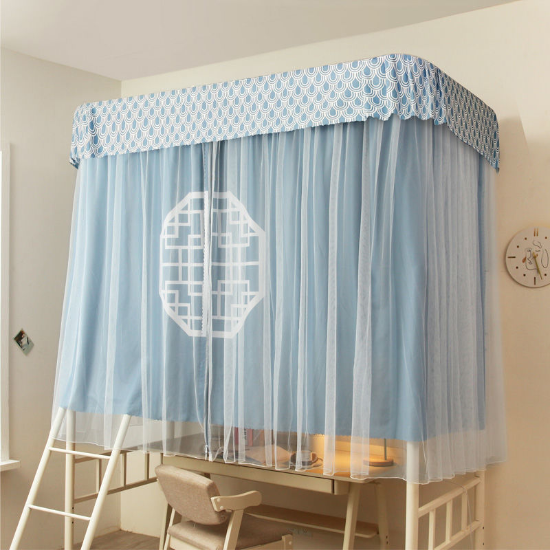 상단 침대 커튼 U자형 레일 차광 모기장 학생 기숙사 이층 침대 바람 이중 거즈 커튼 여자 기숙사 침대 커튼스토어 가기