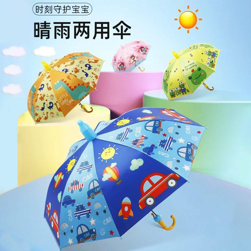 Qingyu 새로운 어린이 우산 태양 보호 및 자외선 차단 이중 목적 비닐 긴 손잡이 직선 손잡이 어린이 우산 반자동 방풍스토어 가기
