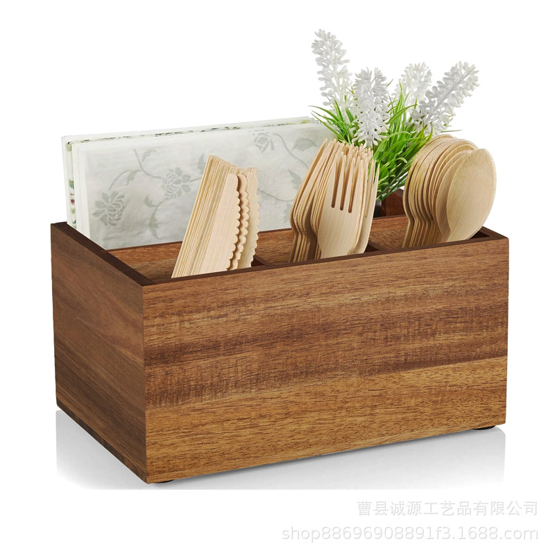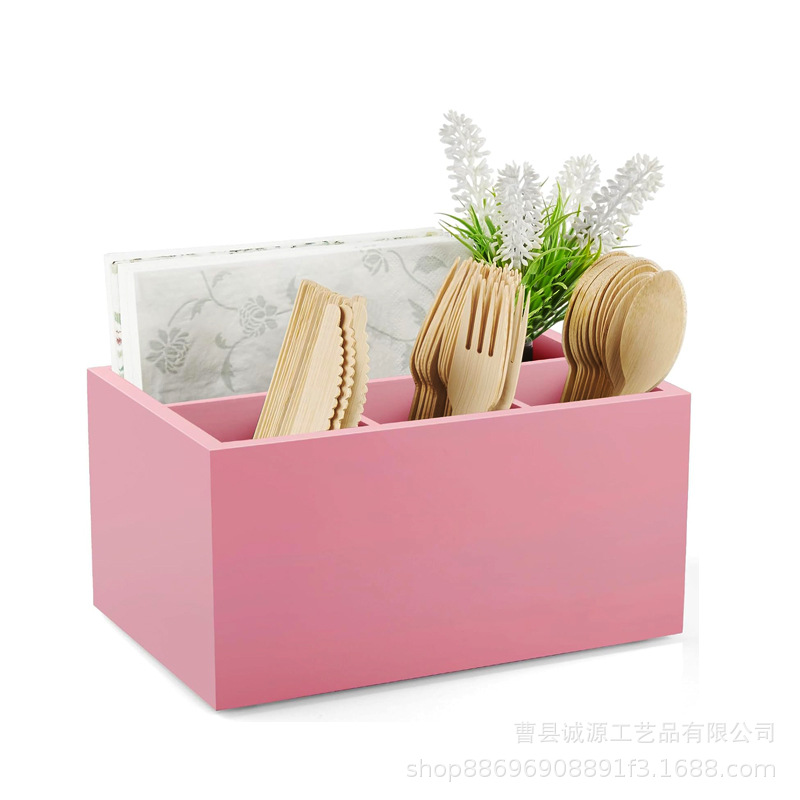 보관 상자 다기능 간단한 핑크 나무 주방 식기 데스크탑 소품 칼, 포크 및 스푼 단단한 나무 보관 상자스토어 가기
