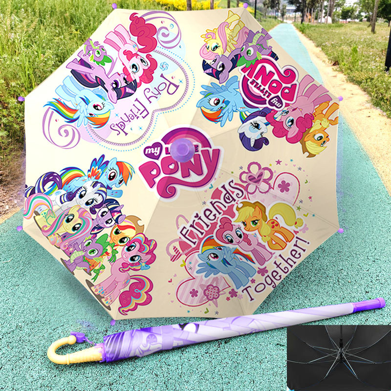 조랑말 폴리 어린이 우산 귀여운 Yunbaobiqi 초등학생 휴대용 차양 다기능 검은 접착제 우산