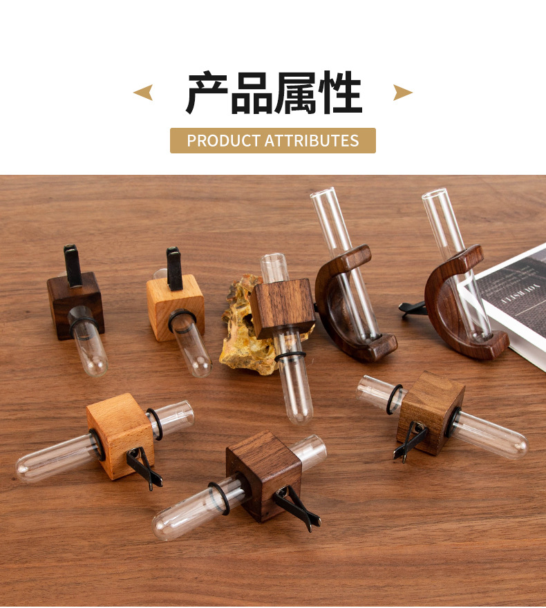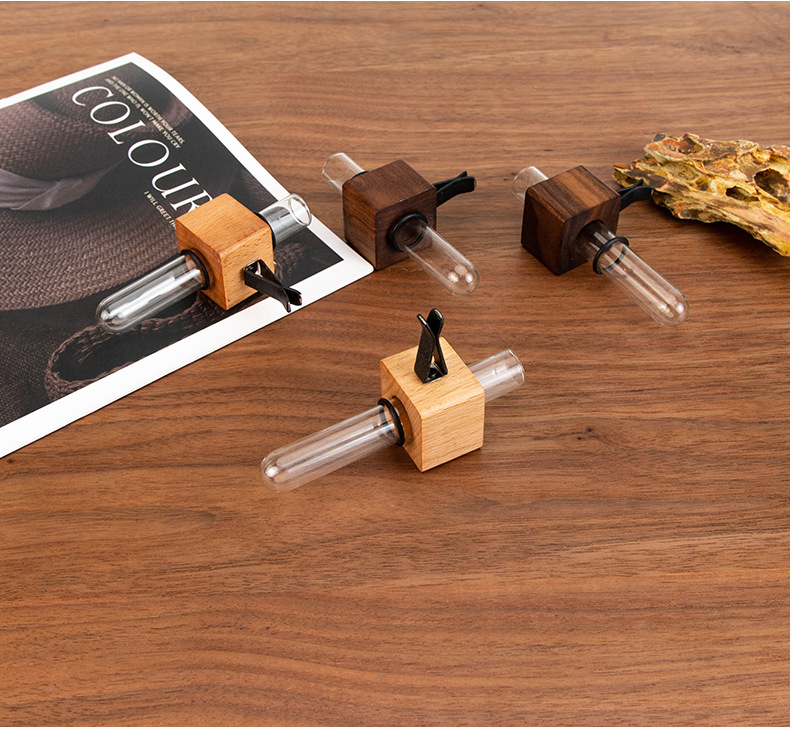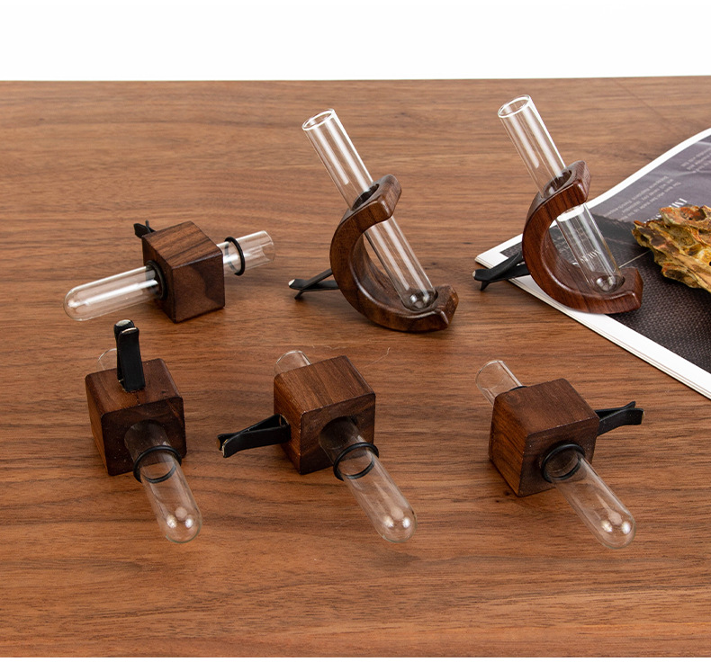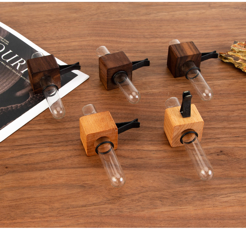 단단한 나무 자동차 에어컨 공기 배출구 꽃꽂이 창조적 인 꽃 식물 테스트 튜브 수경 재배자 작은 꽃다발 벽걸이 장식