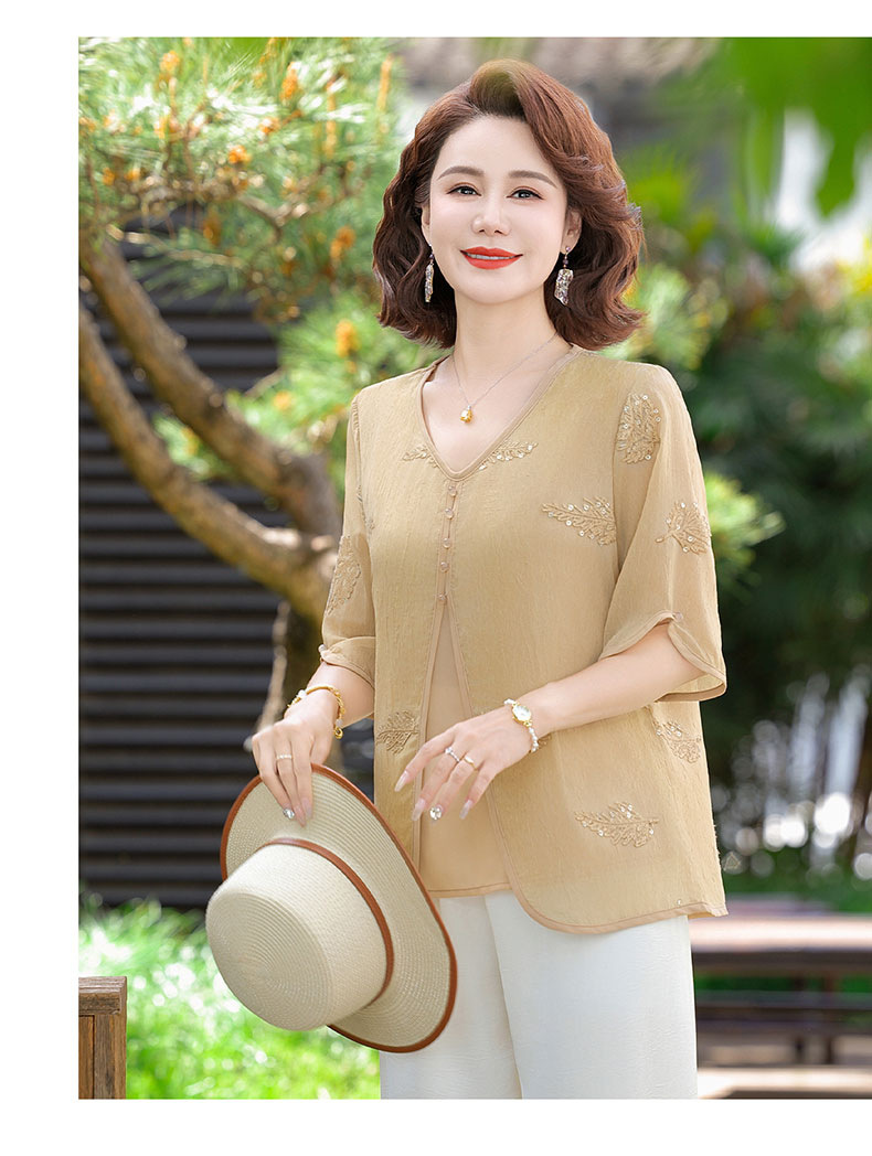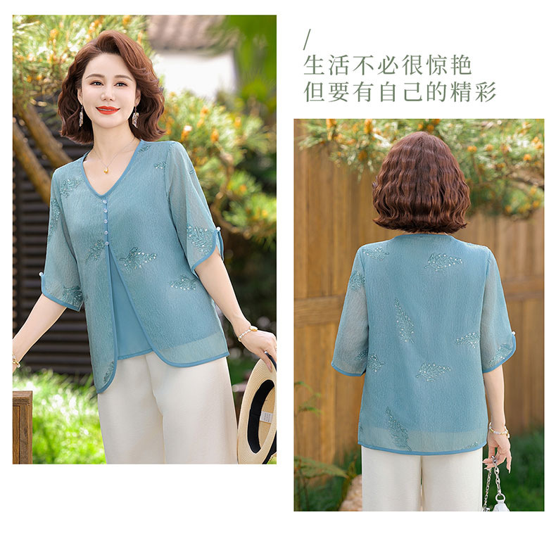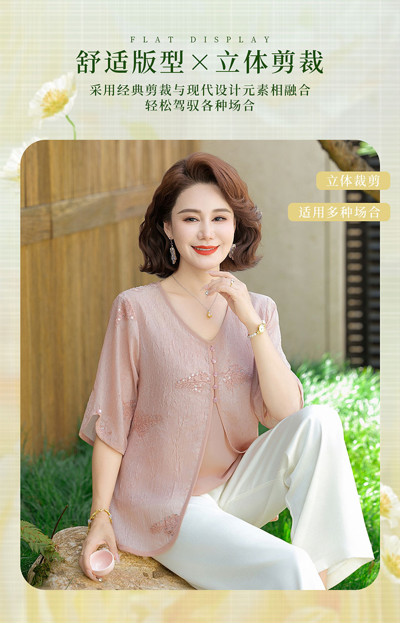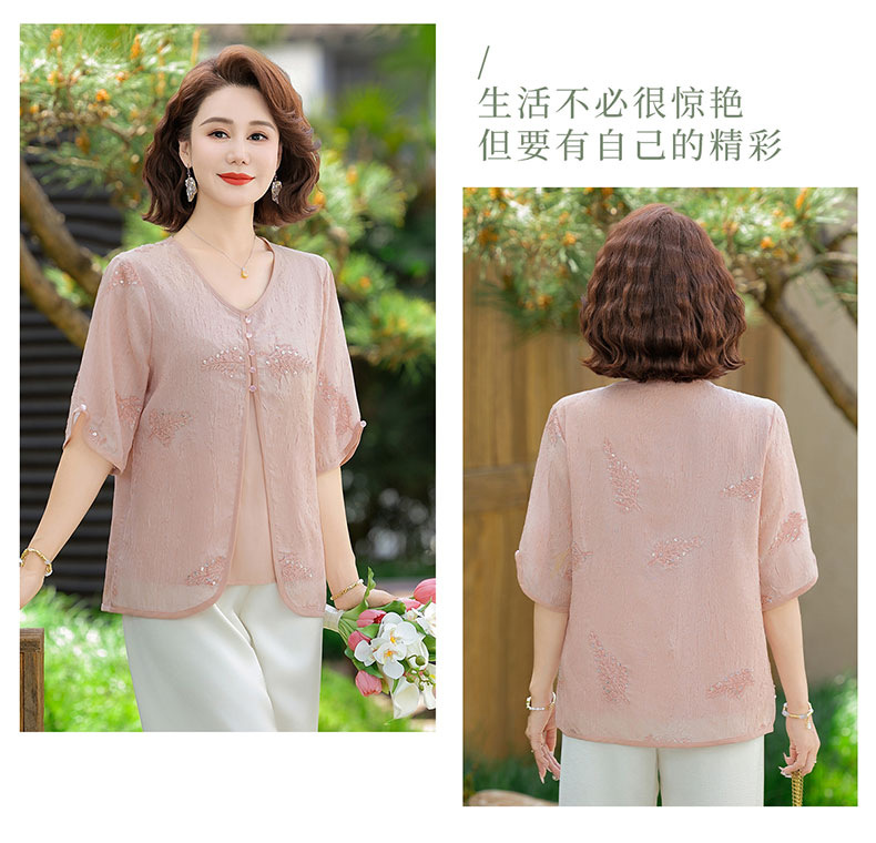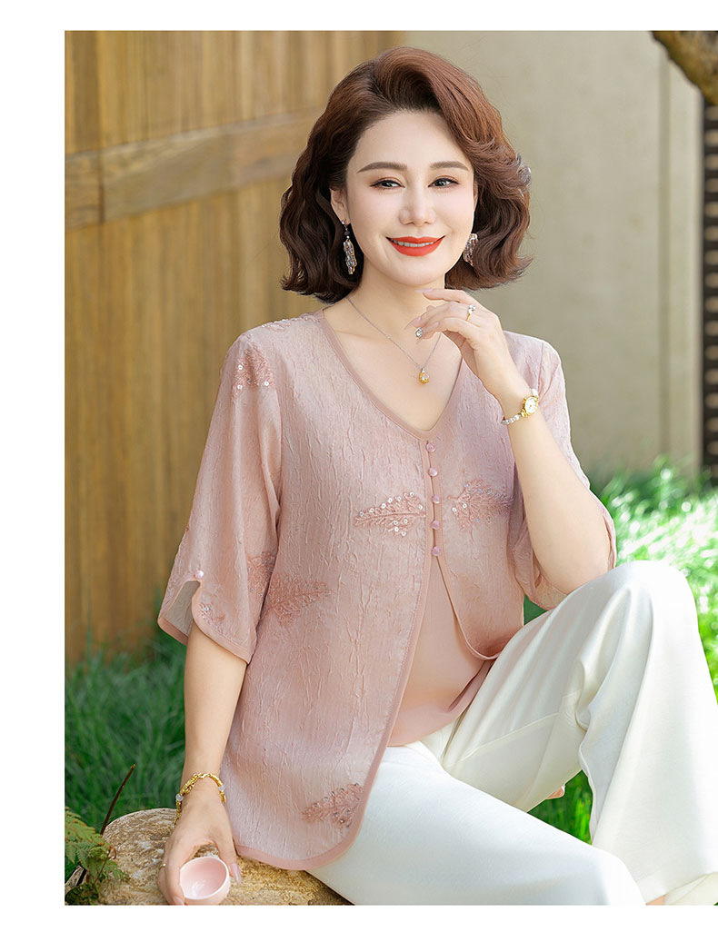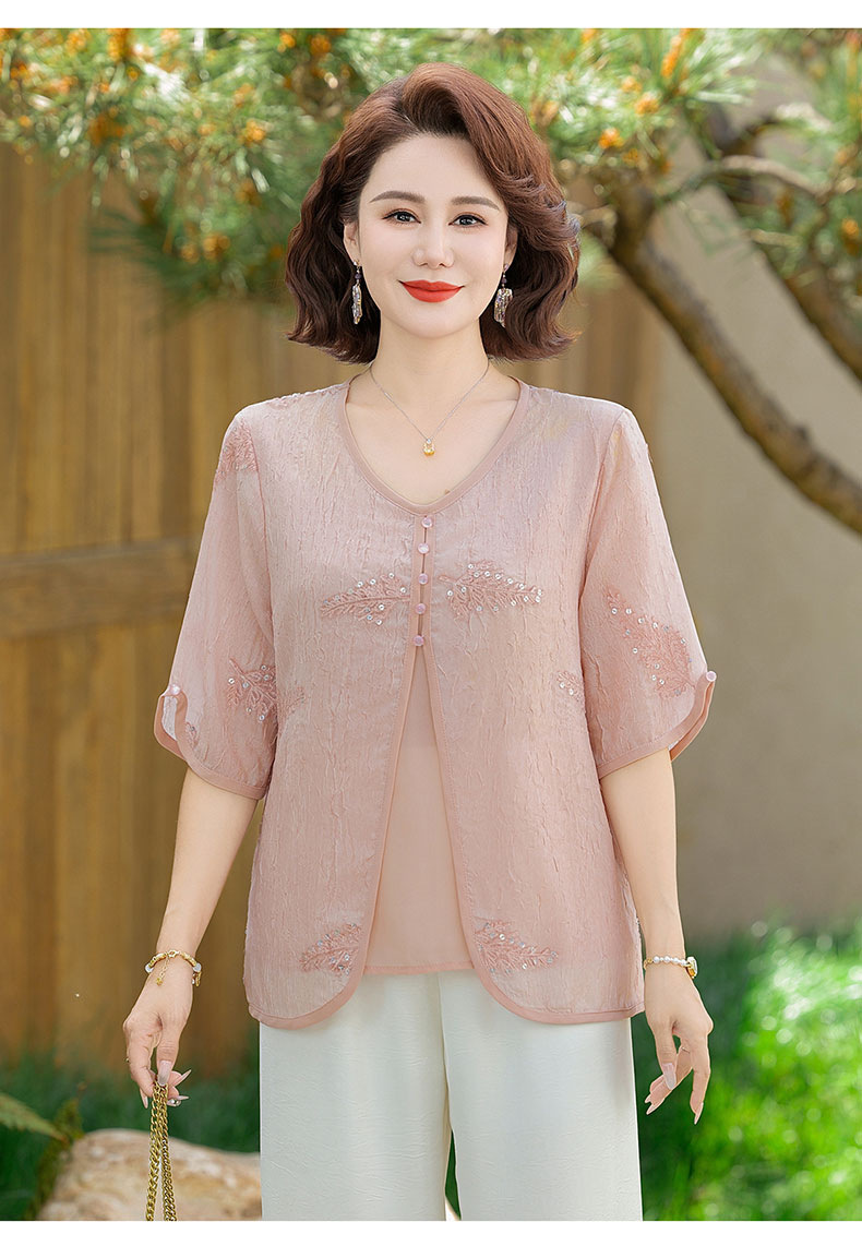 도매 엄마 여름 가짜 투피스 쉬폰 셔츠, 고급스럽고 새로운 스타일의 셔츠, 중년 및 노년 여성 티셔츠 상의스토어 가기