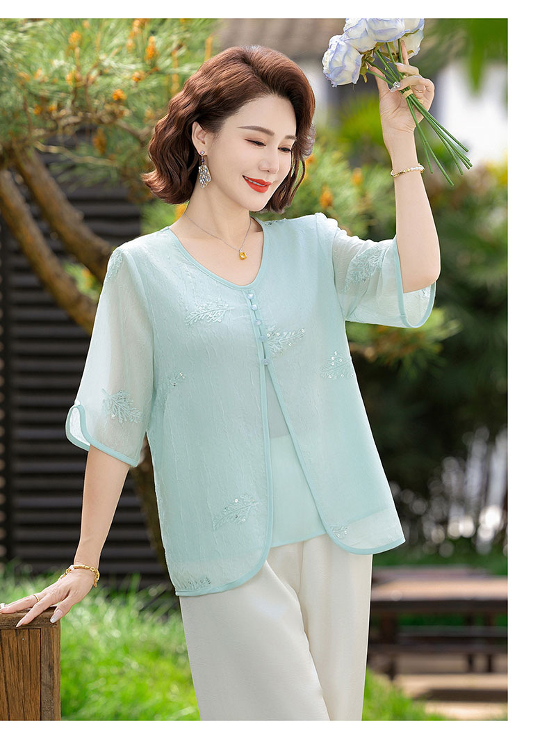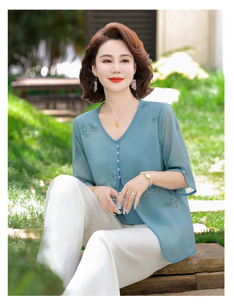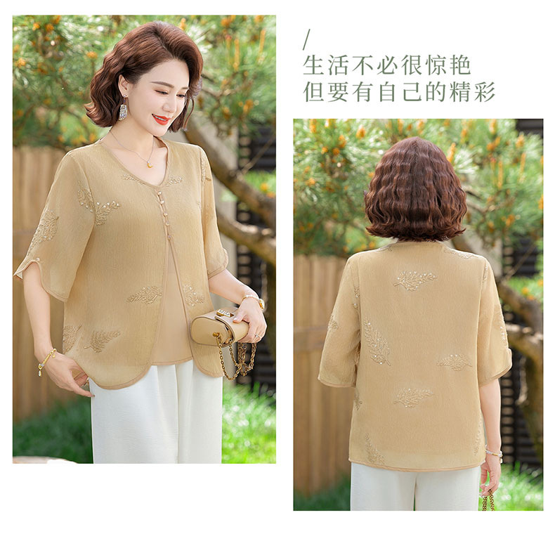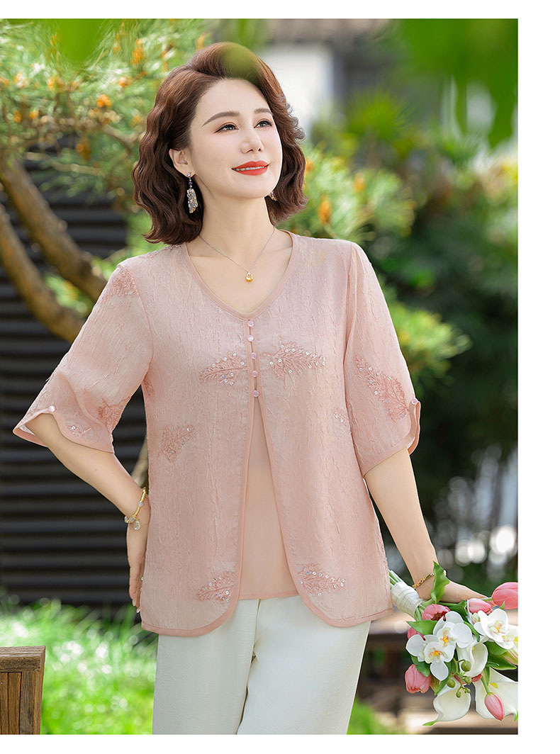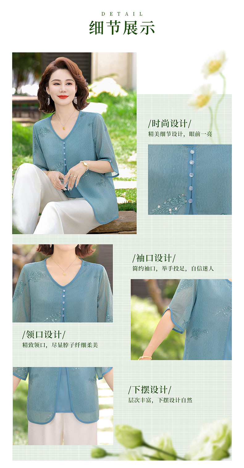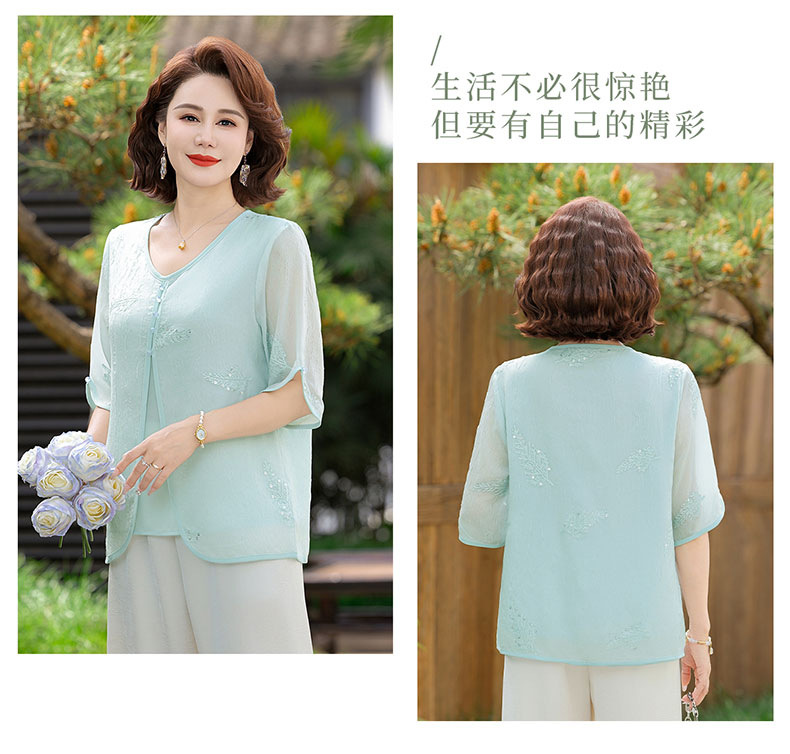 도매 엄마 여름 가짜 투피스 쉬폰 셔츠, 고급스럽고 새로운 스타일의 셔츠, 중년 및 노년 여성 티셔츠 상의스토어 가기