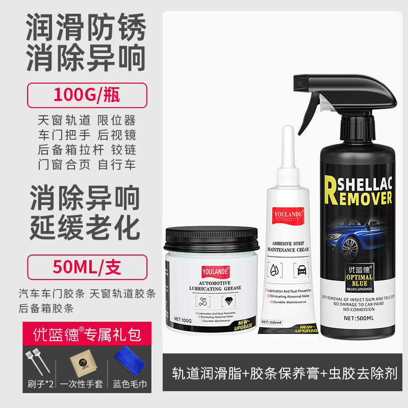 • 완전 합성 스트립 실리콘 그리스 - 50g(치약 튜브) + 유란드 고침투 윤활제 - 120ML 일회용 흰색 브러시*2 + 일회용 장갑 + 파란색 머리카락