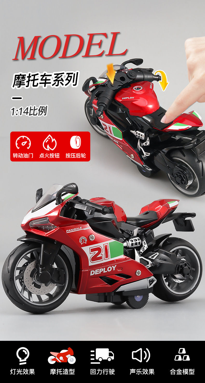 1:14 시뮬레이션 Ducati 합금 오토바이 모델 소리와 빛 풀백 케이크 베이킹 장식 장식품 블라인드 박스스토어 가기