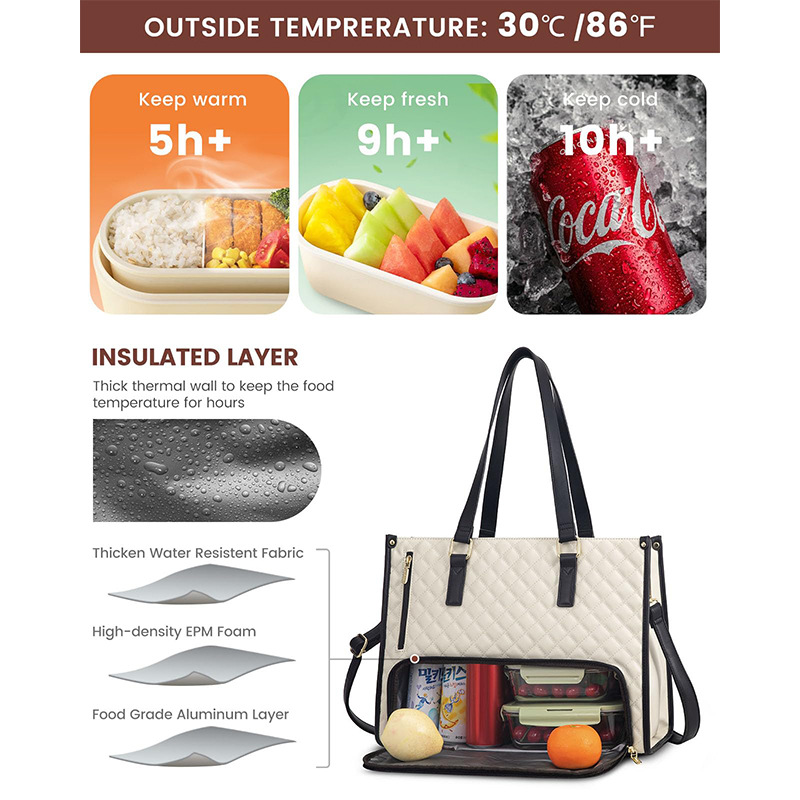신제품 2-in-1 핸드백, 도시락 가방, 콤비네이션 백, 대형 핸드백, 보온 도시락, 여성용 크로스바디 컴퓨터 가방