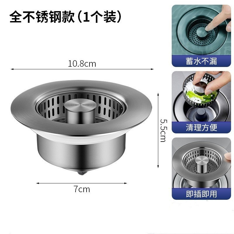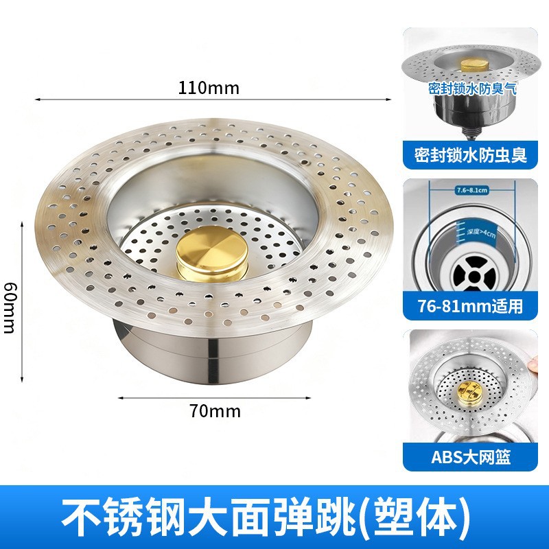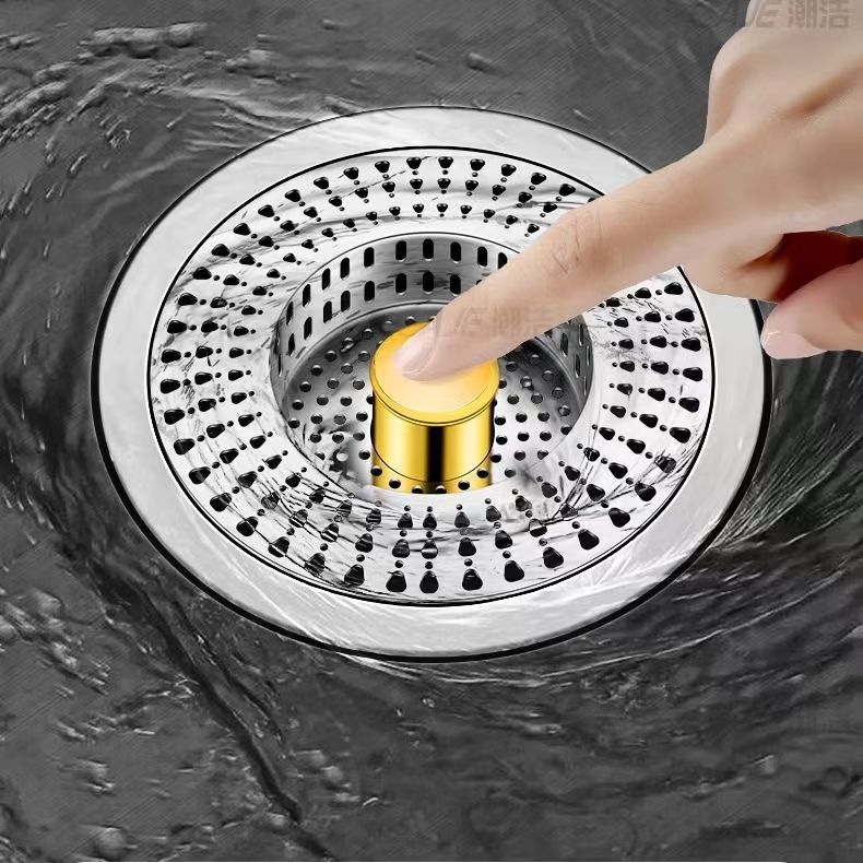 주방 싱크 필터 탄성 코어 스테인레스 스틸 필터 식기 세척 싱크 범용 푸시 형 싱크대 누수 플러그스토어 가기