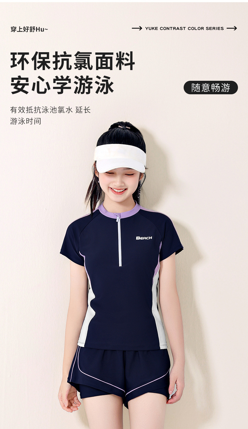 아동 수영복 여아 스플릿 중대형 아동 여아 수영복 2025 신입생 보수적 자외선 차단 트레이닝복 중학생스토어 가기