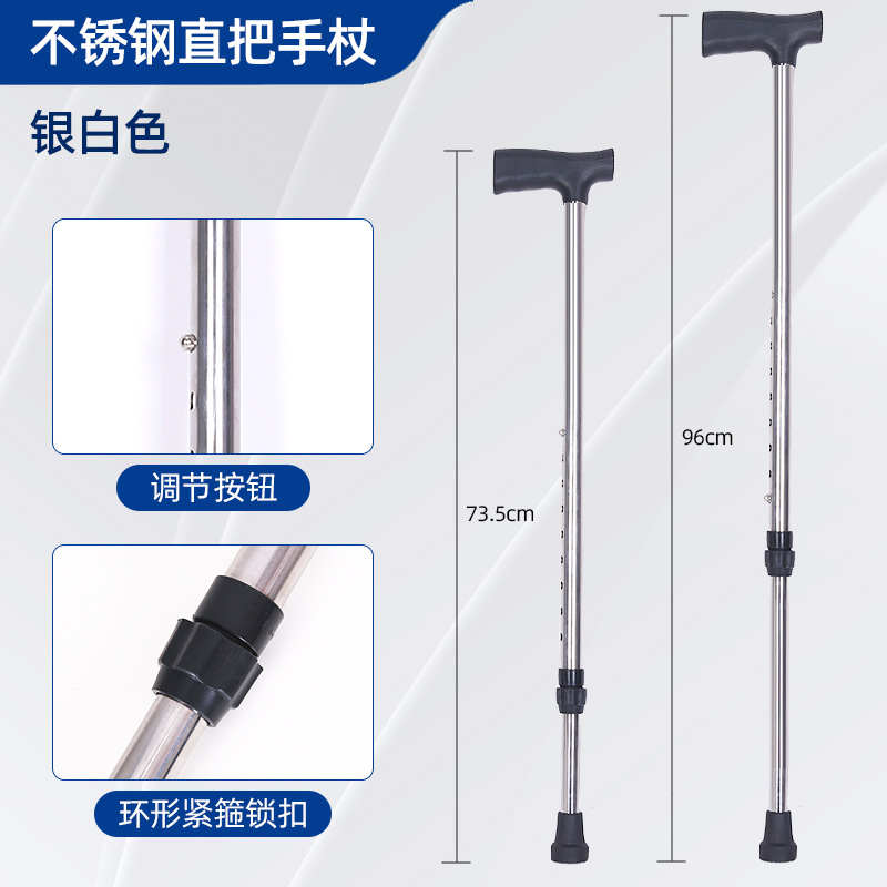 • 은백색 알루미늄 합금 직선 손잡이 지팡이