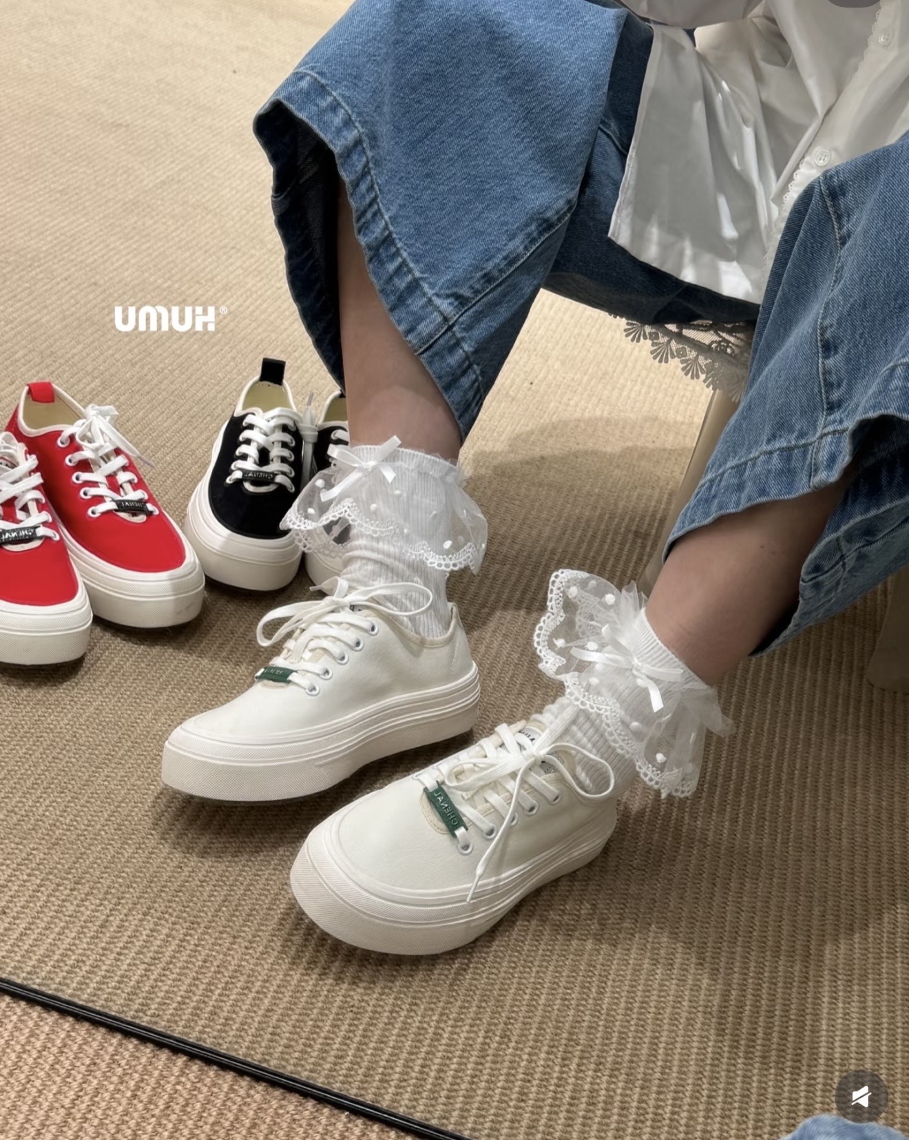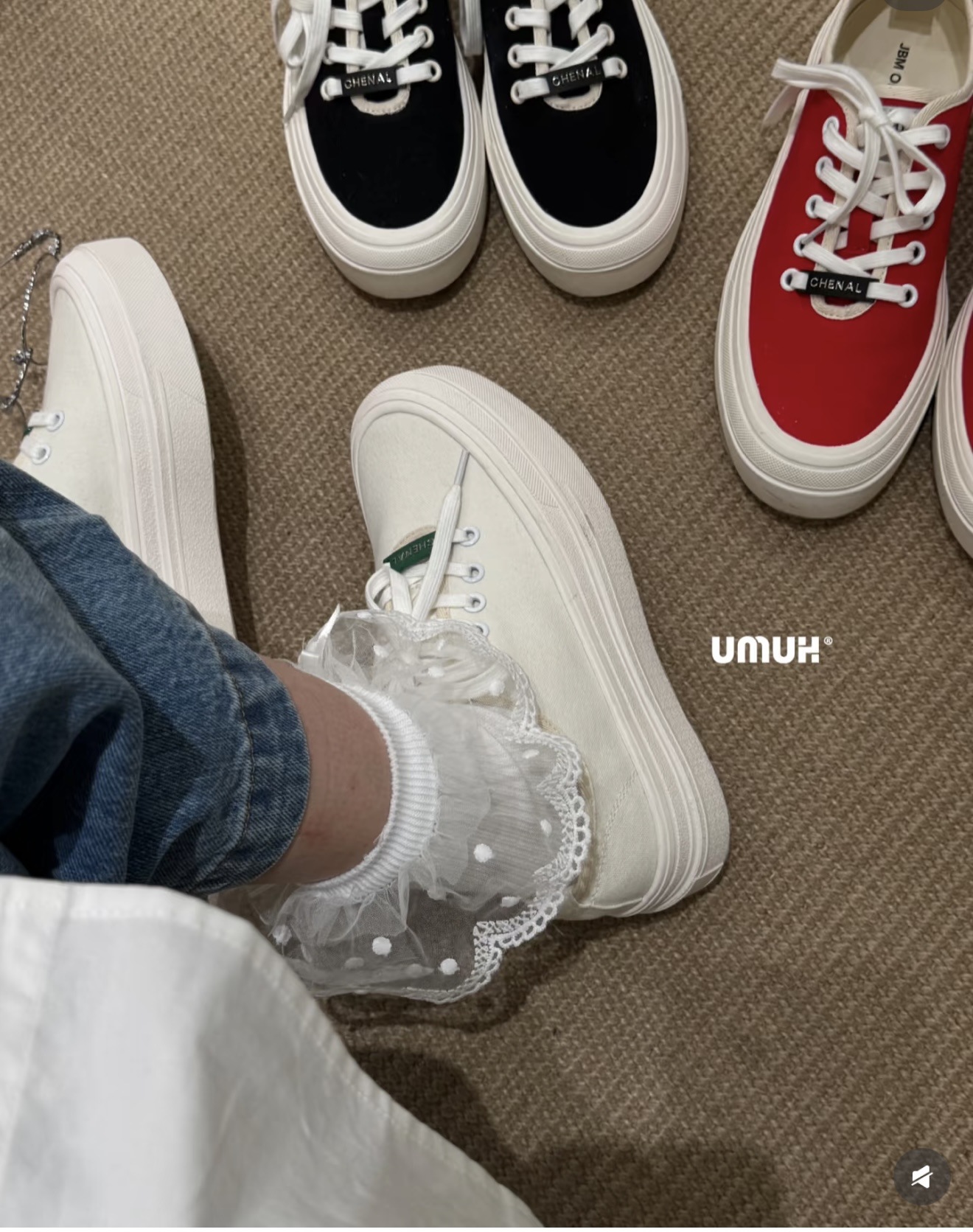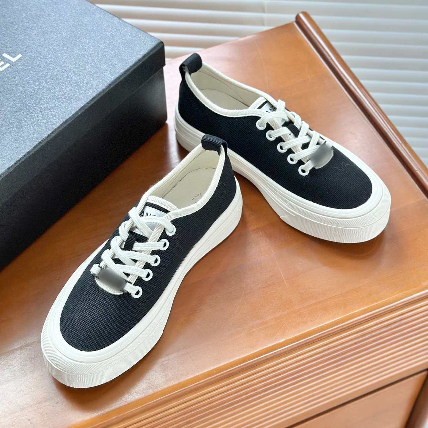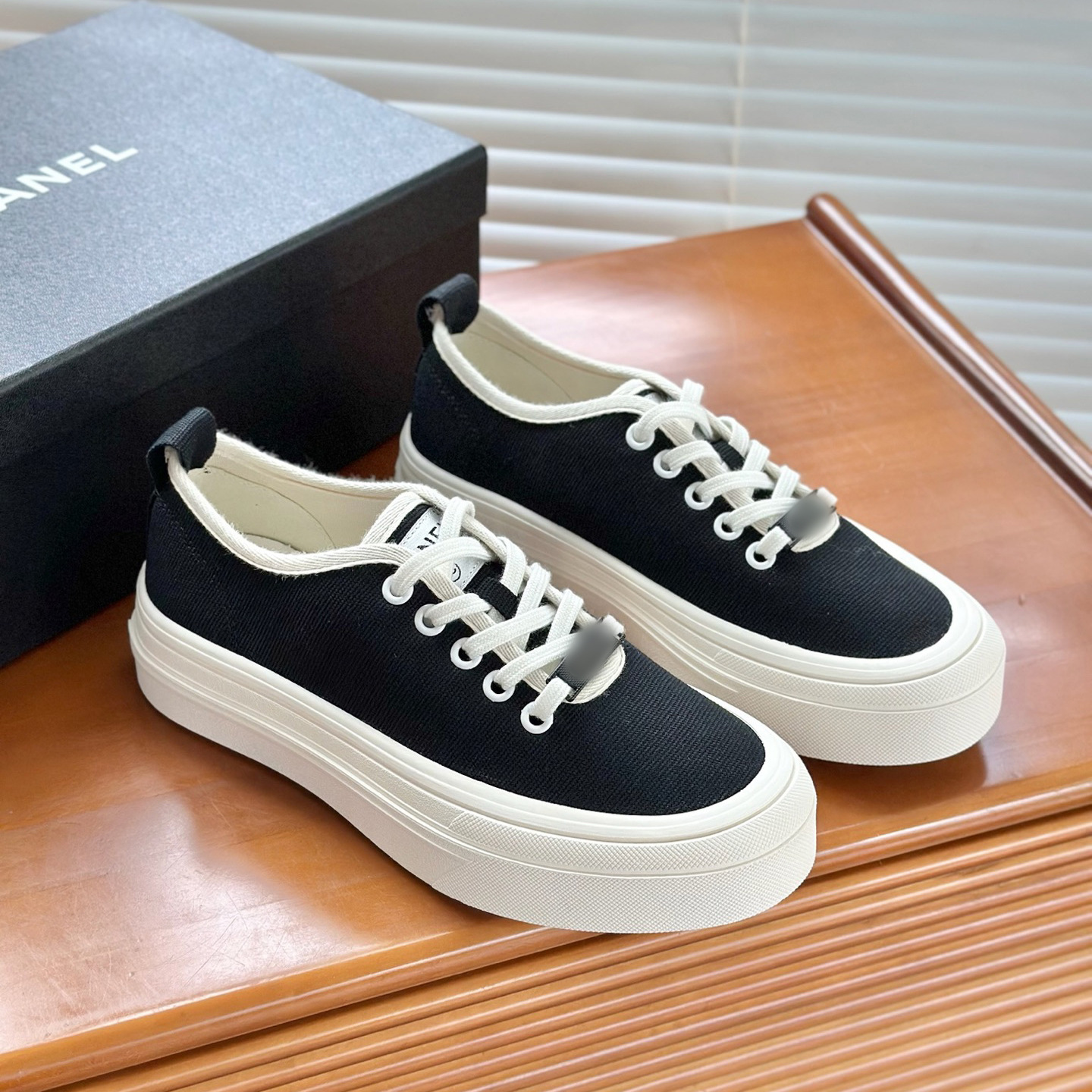 고급 2025 봄 신상 스타일 Xiaoxiang 같은 스타일의 여성용 레이스업 운동화, 둥근 발가락 두꺼운 밑창 캔버스 비스킷 슈즈, 스포츠 싱글 슈즈스토어 가기