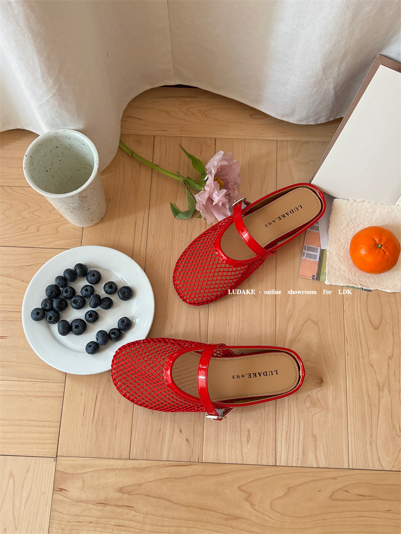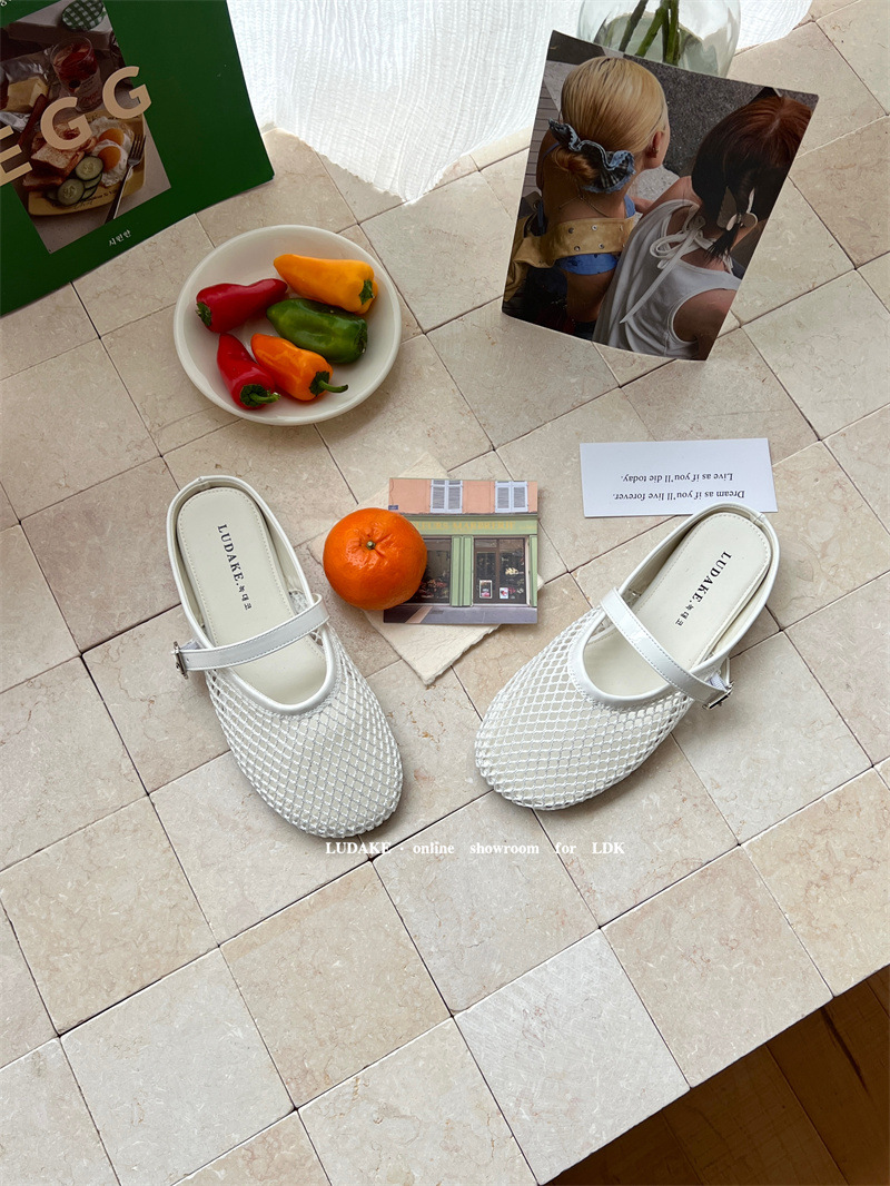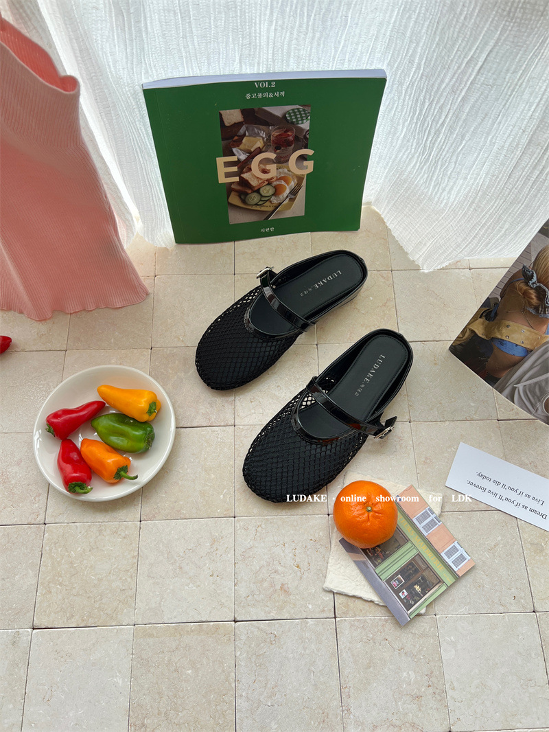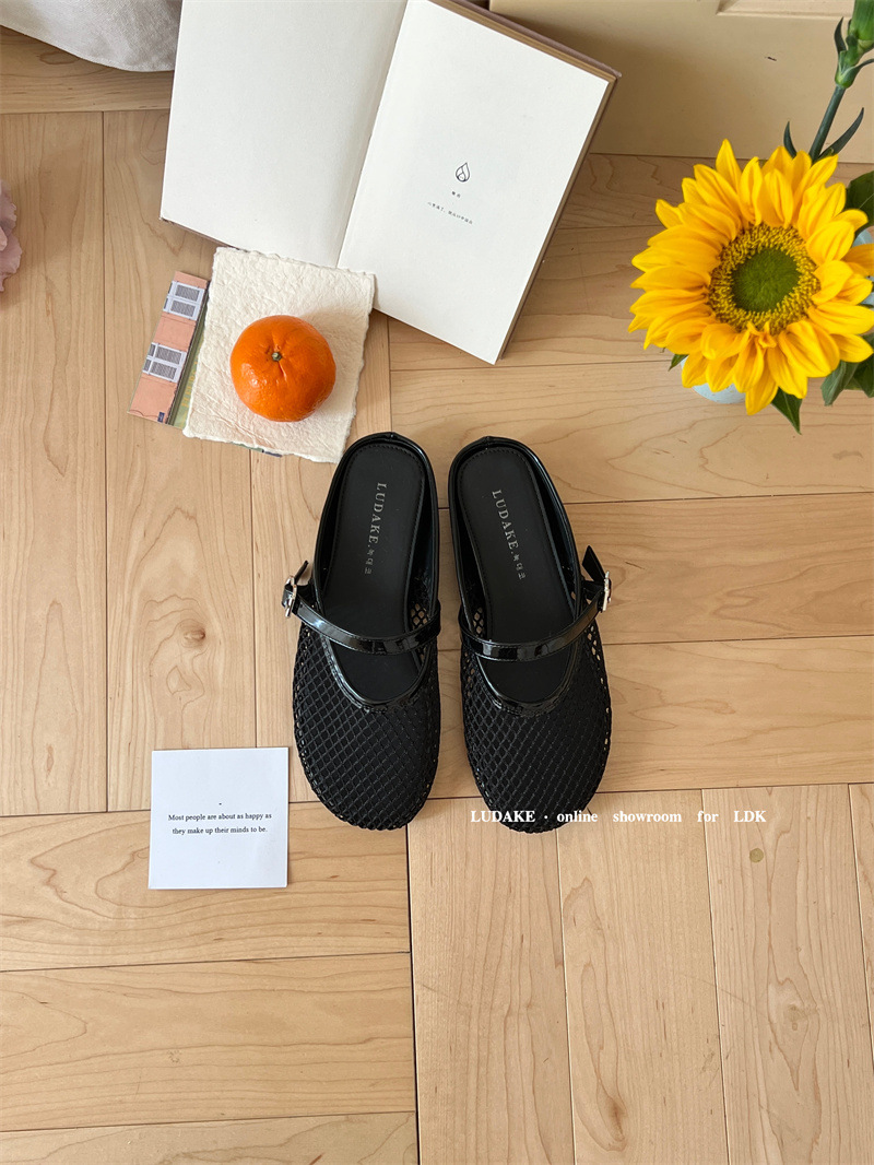 프랑스 스타일 Mary Jane Hollow Toe Half 슬리퍼 여성용 아우터웨어 플랫 여름 2025 새로운 플랫 힐 스커트 샌들스토어 가기