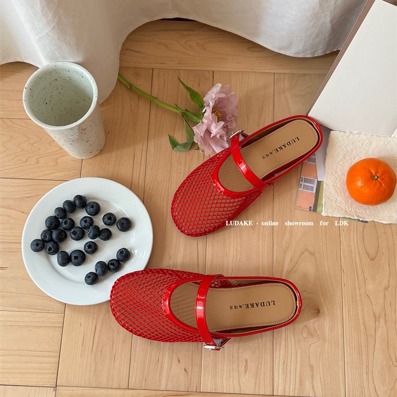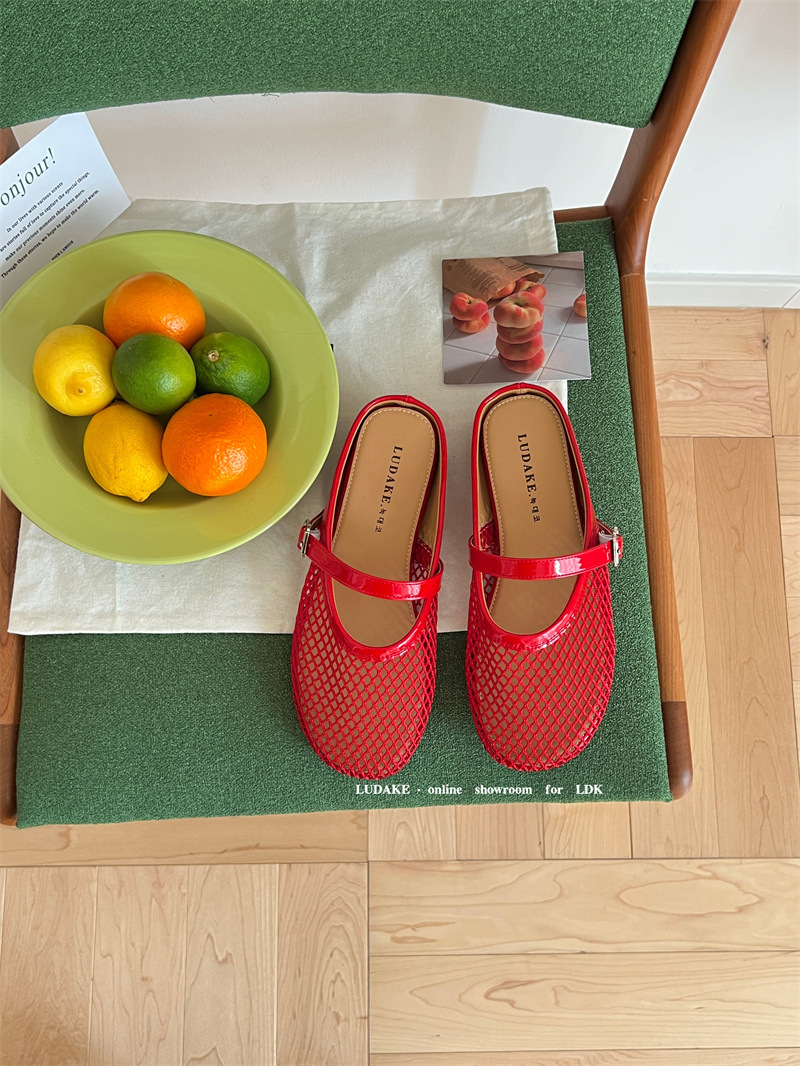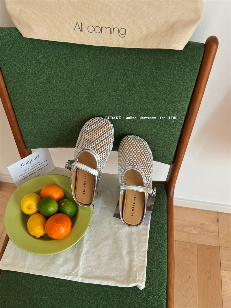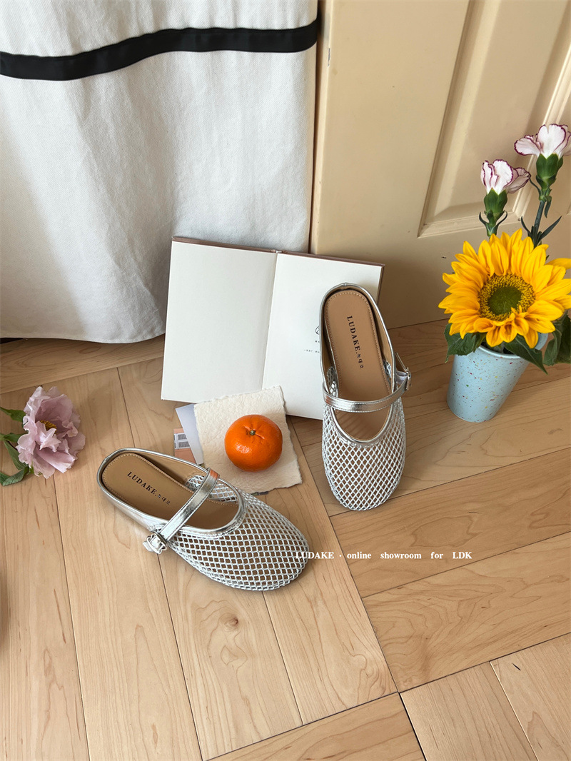 프랑스 스타일 Mary Jane Hollow Toe Half 슬리퍼 여성용 아우터웨어 플랫 여름 2025 새로운 플랫 힐 스커트 샌들스토어 가기