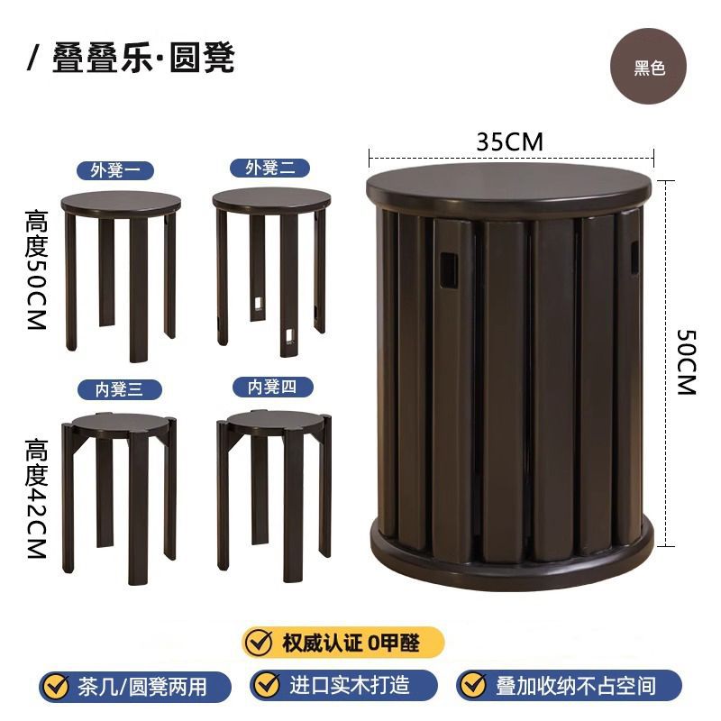 스택 라운드 의자 단단한 나무 다기능 벤치 의자 조합 커피 테이블 거실 홈 스택 현대 식사 의자 s^