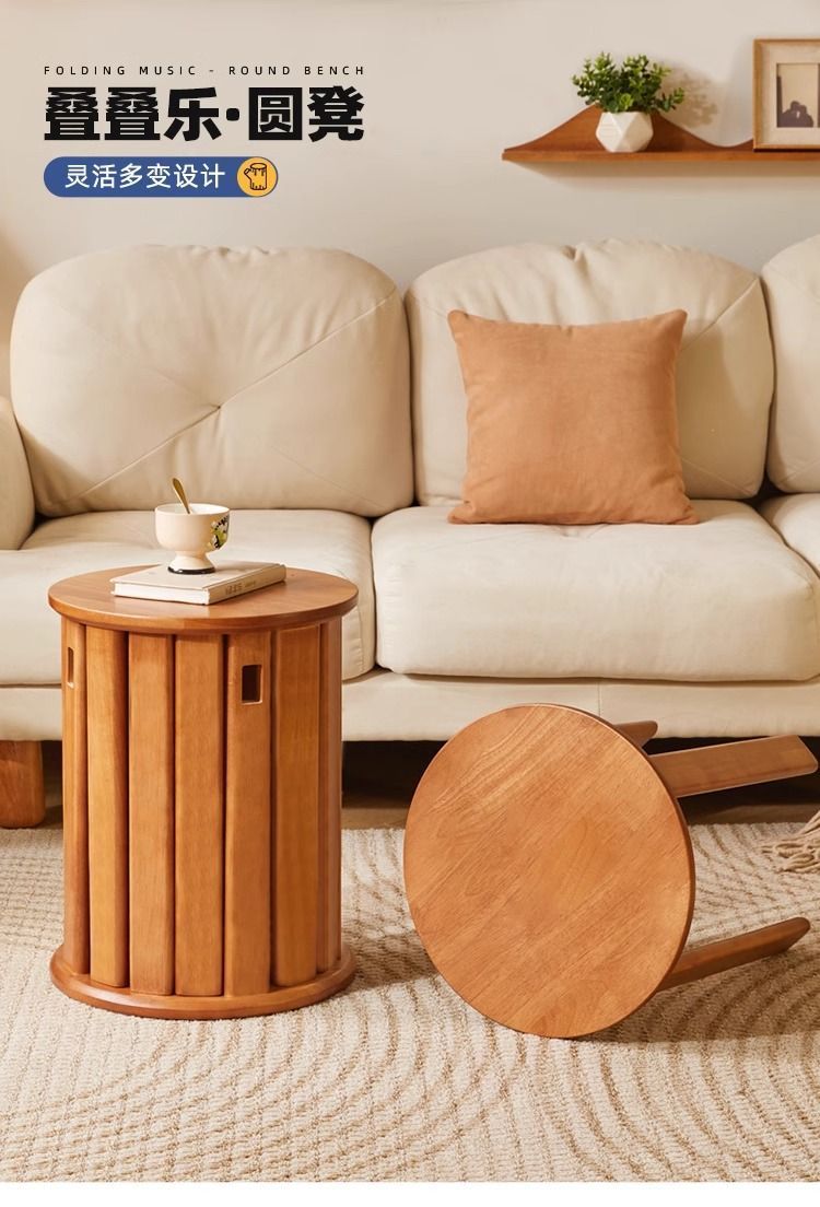 스택 라운드 의자 단단한 나무 다기능 벤치 의자 조합 커피 테이블 거실 홈 스택 현대 식사 의자 s^스토어 가기