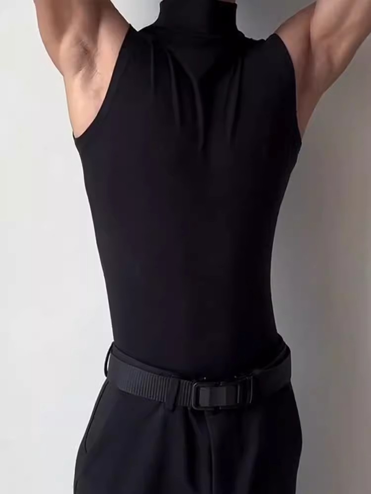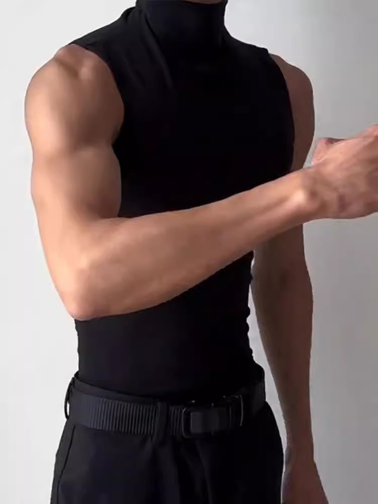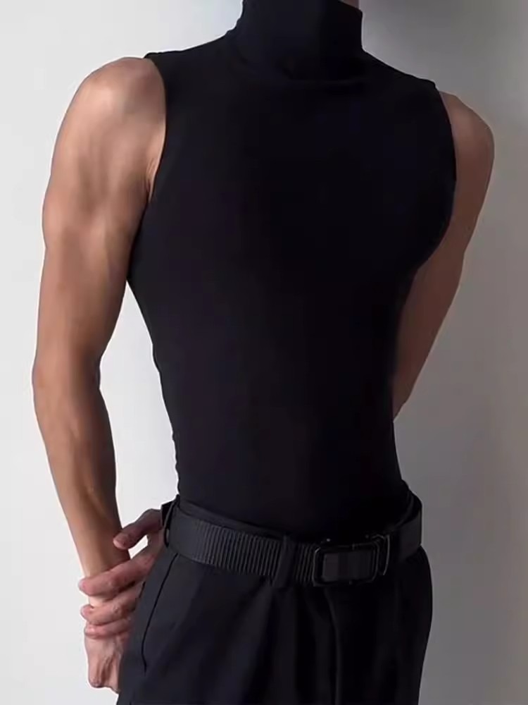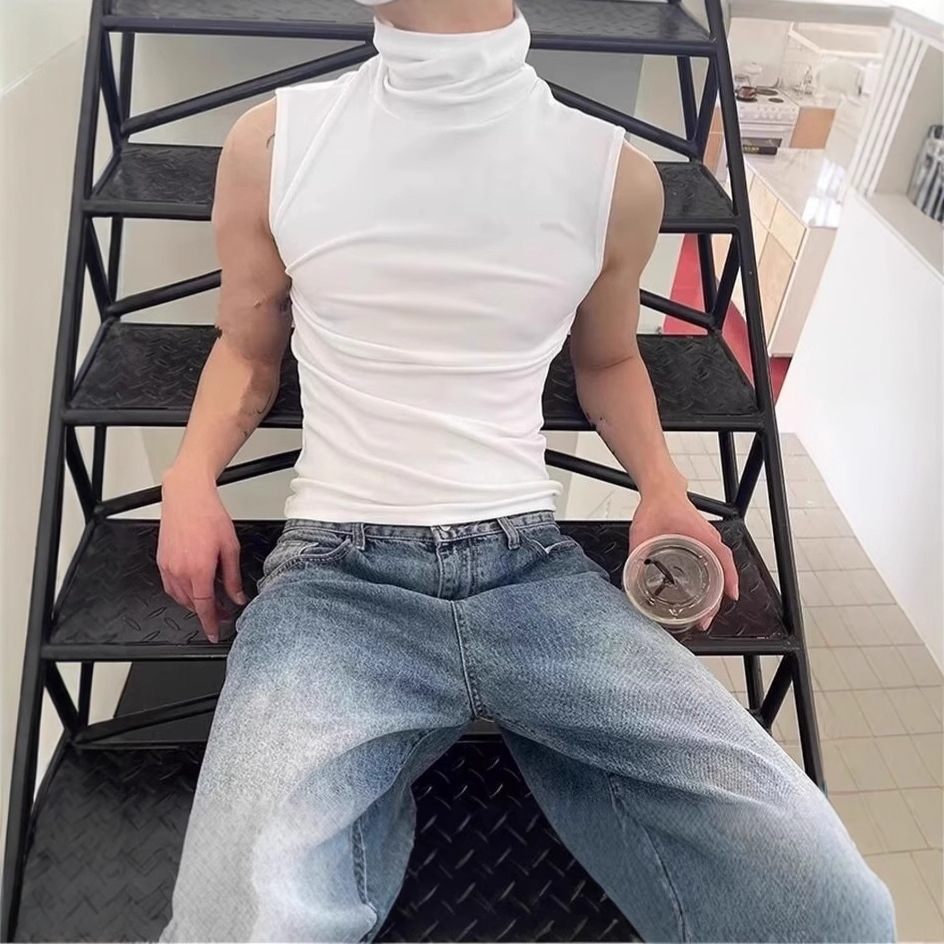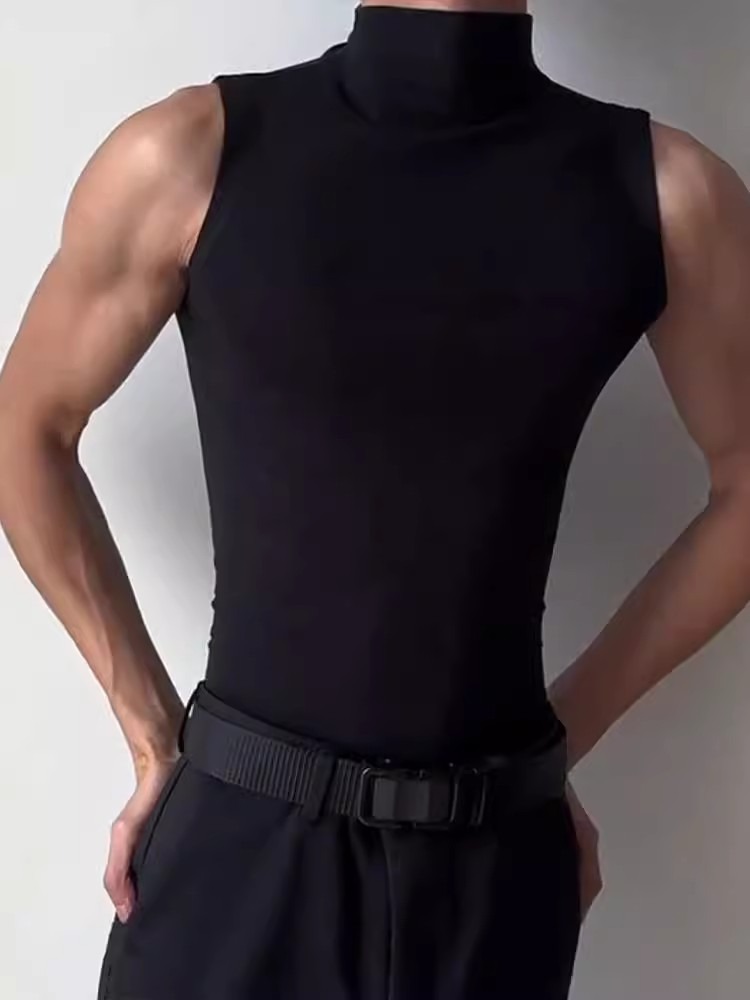 근육질 남성 피트니스 트레이닝 의류 솔리드 컬러 통기성 기본 스포츠 민소매 티셔츠 하이 칼라 탄성 속건성 러닝 조끼