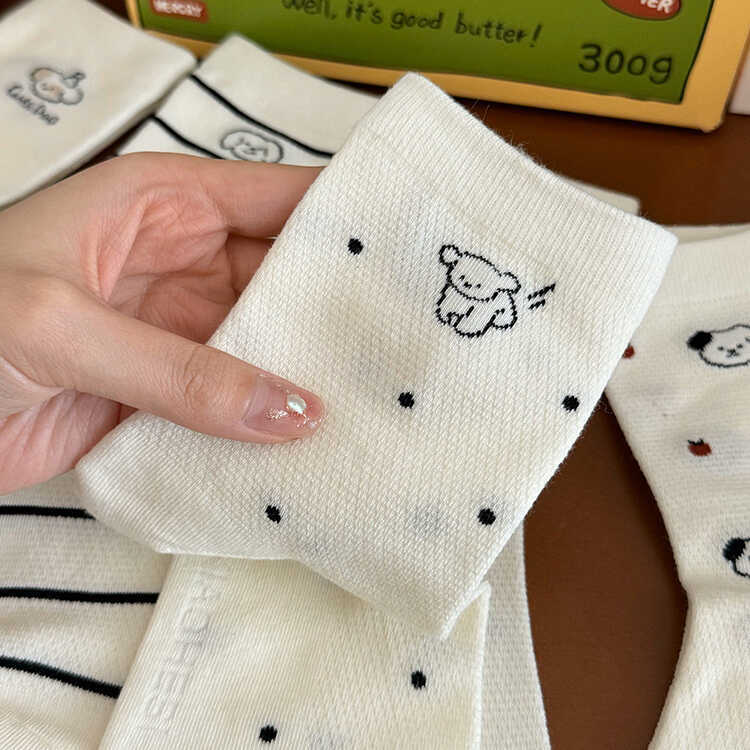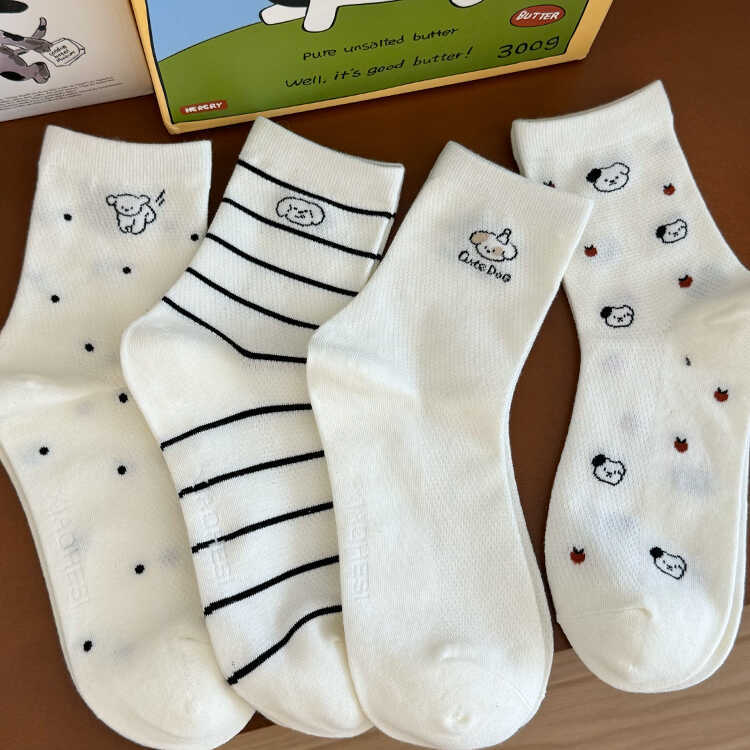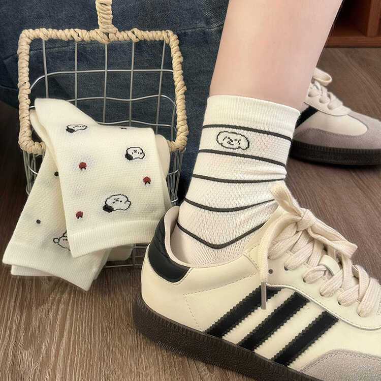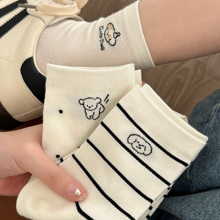 흰색 강아지 메쉬 양말 여성용 종아리 중간 양말 트렌디 솔리드 컬러 여름 얇은 일본 만화 귀여운 스타킹 봄스토어 가기
