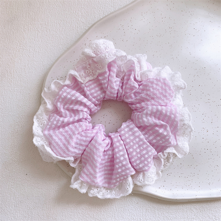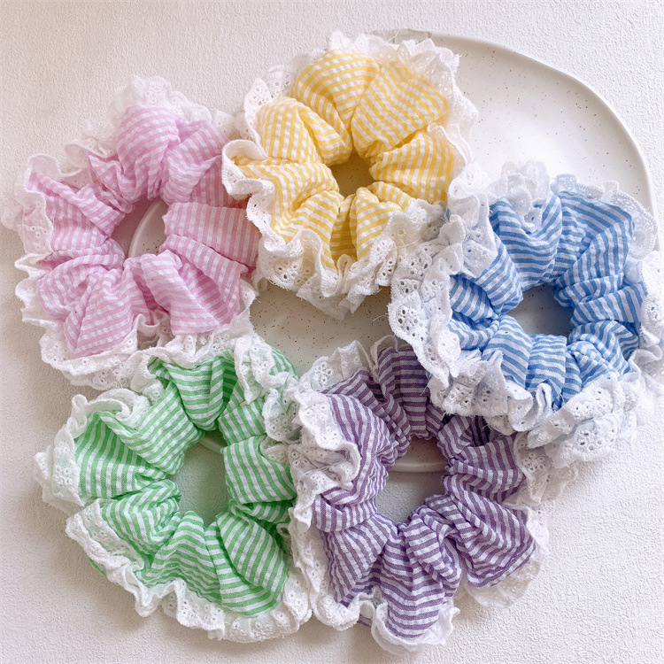 달콤한 소녀 줄무늬 레이스 큰 장내 머리 반지 간단한 기질 아카데미 스타일 헤어 로프 복숭아 꼬리 머리 로프 헤드웨어