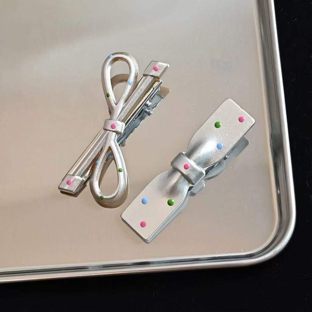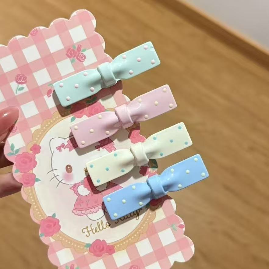 • DT5782 크림 도트 헤어핀 보우 스타일