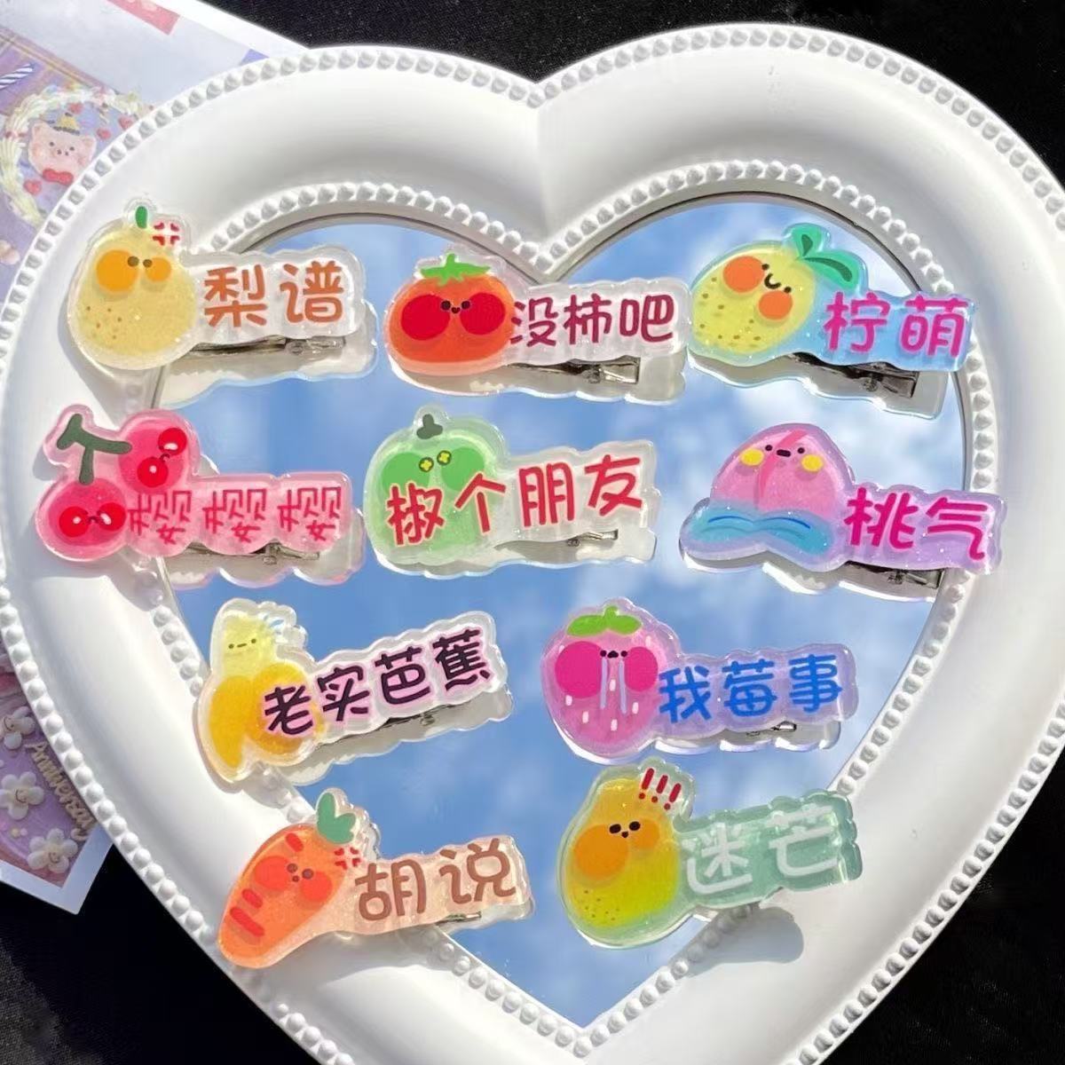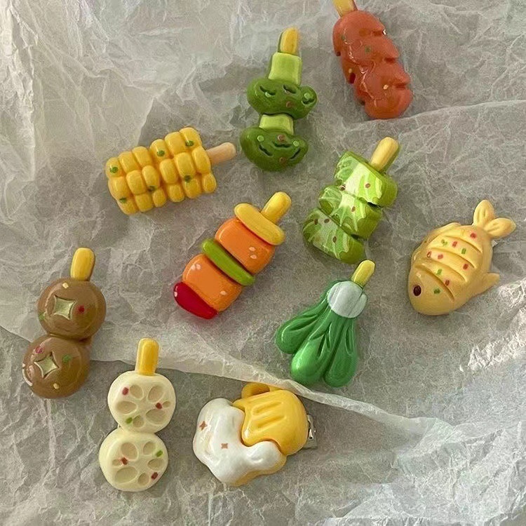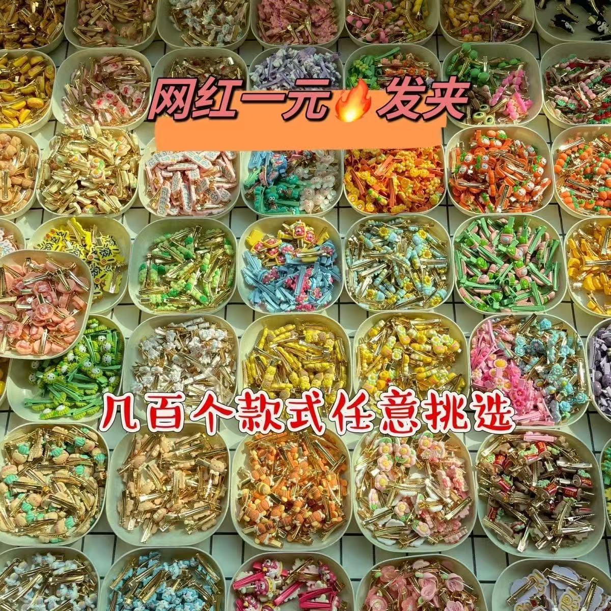 1 위안 머리핀 배치 야시장 마구간 인터넷 연예인 머리핀 헤어 로프 도매 절묘한 귀여운 만화 머리 장식 음식과 놀이 과일스토어 가기