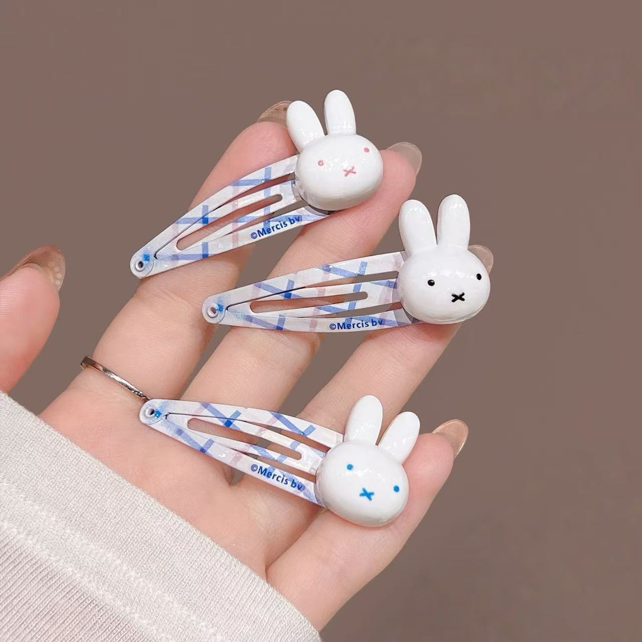 • DT7123 블루 체크 무늬 미피 래빗 bb 클립