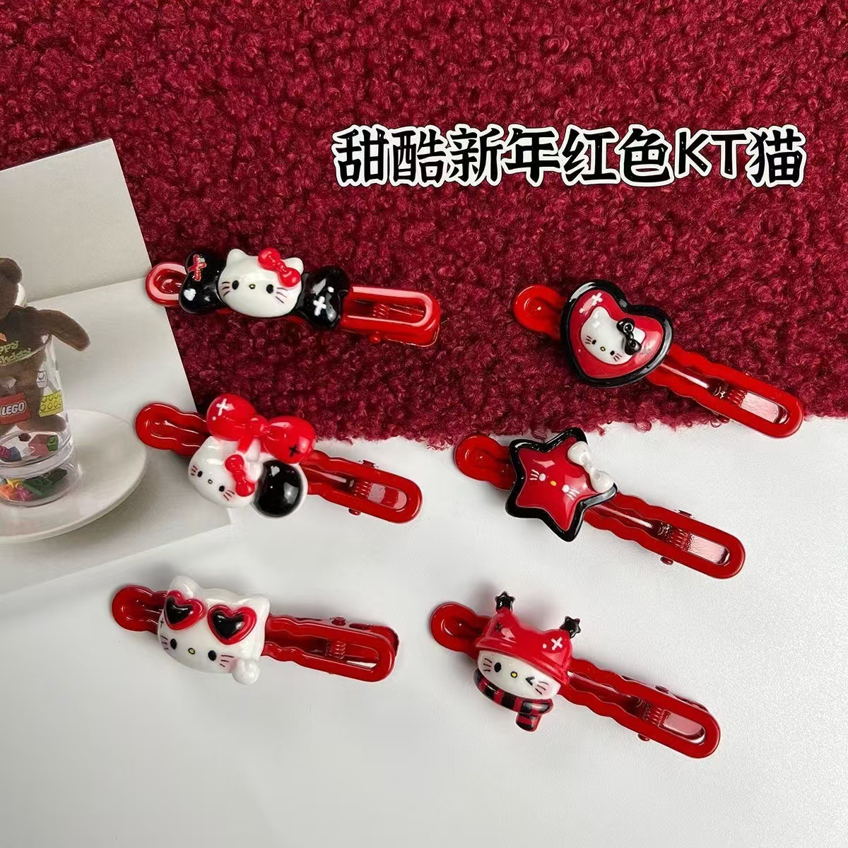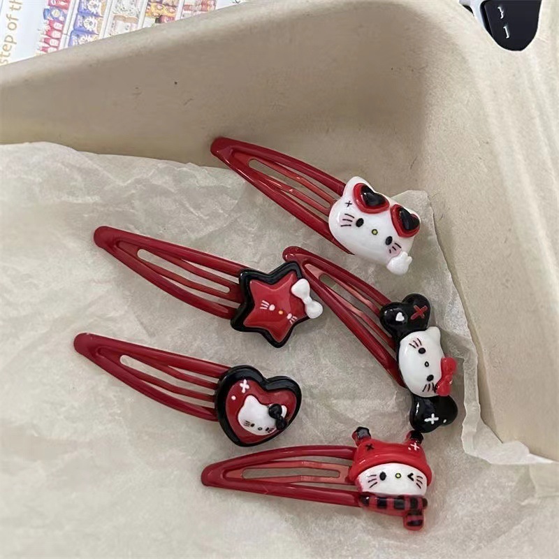 • DT5939 파란색 배경에 빨간색 하트 고양이 머리핀