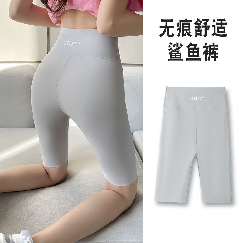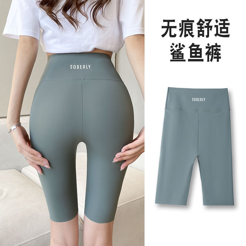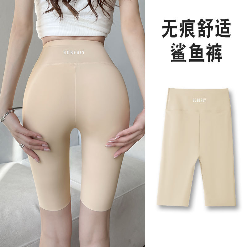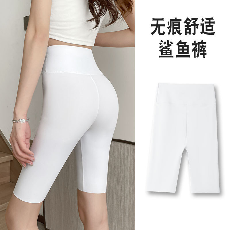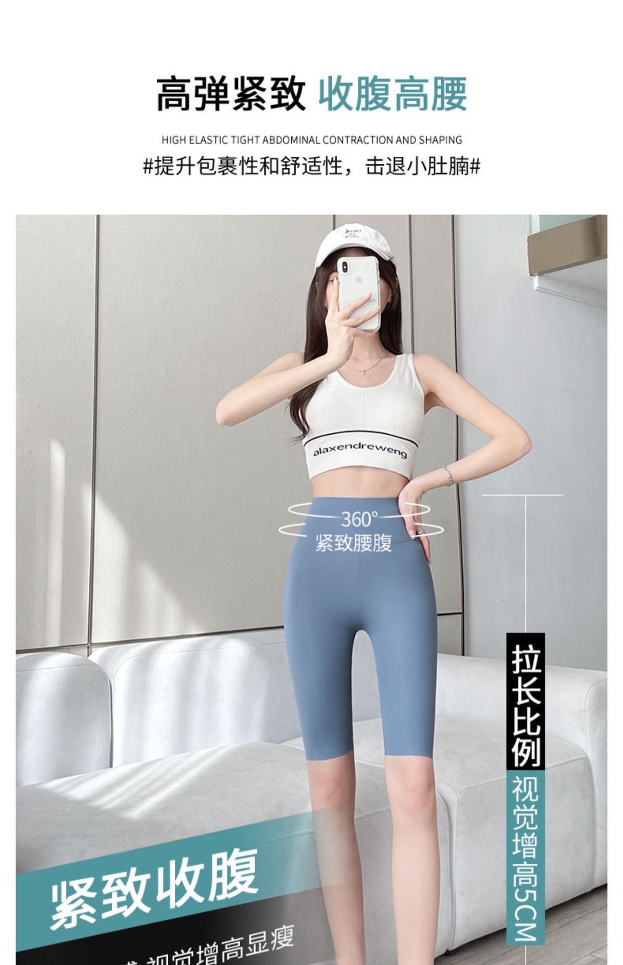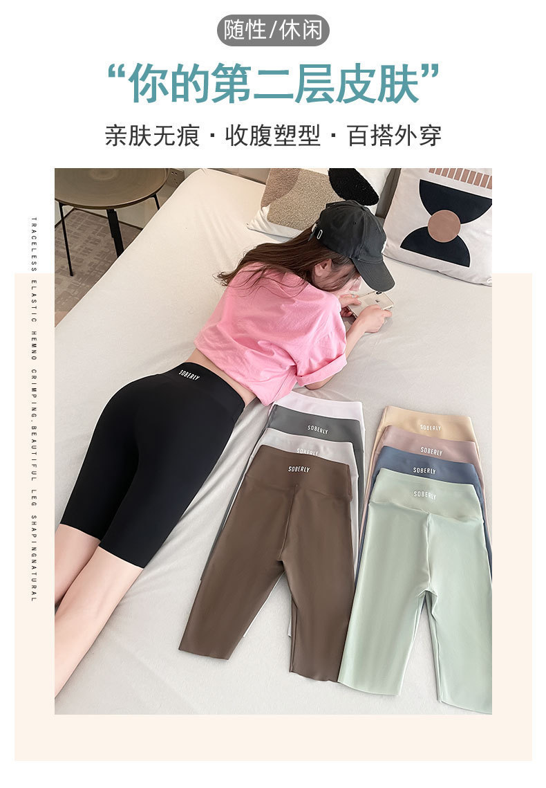 아이스 실크 5 점 상어 바지 여성 외복 여름 얇은 높은 허리 배 착색 바비 라이딩 요가 베이스 반바지스토어 가기