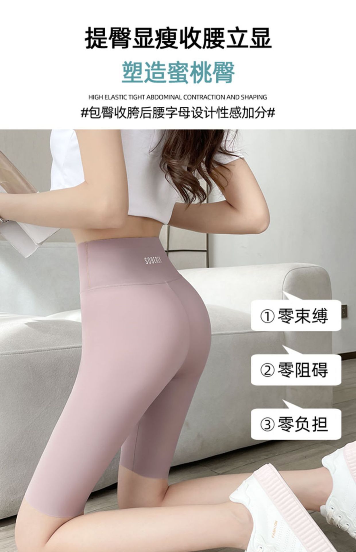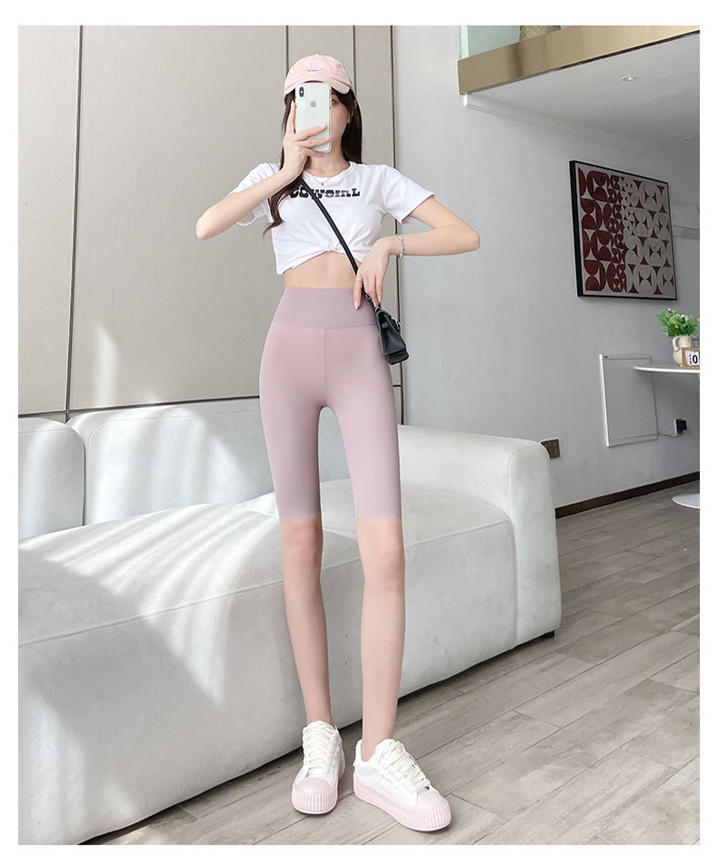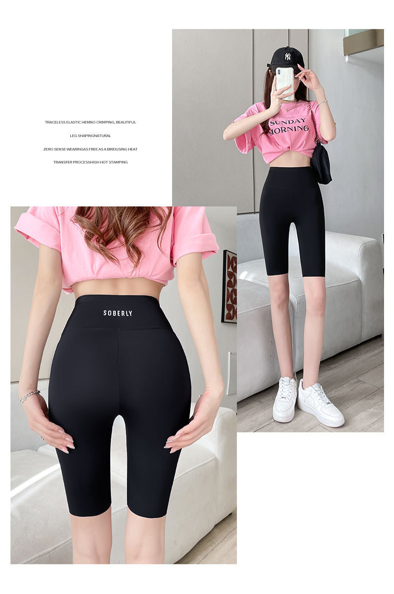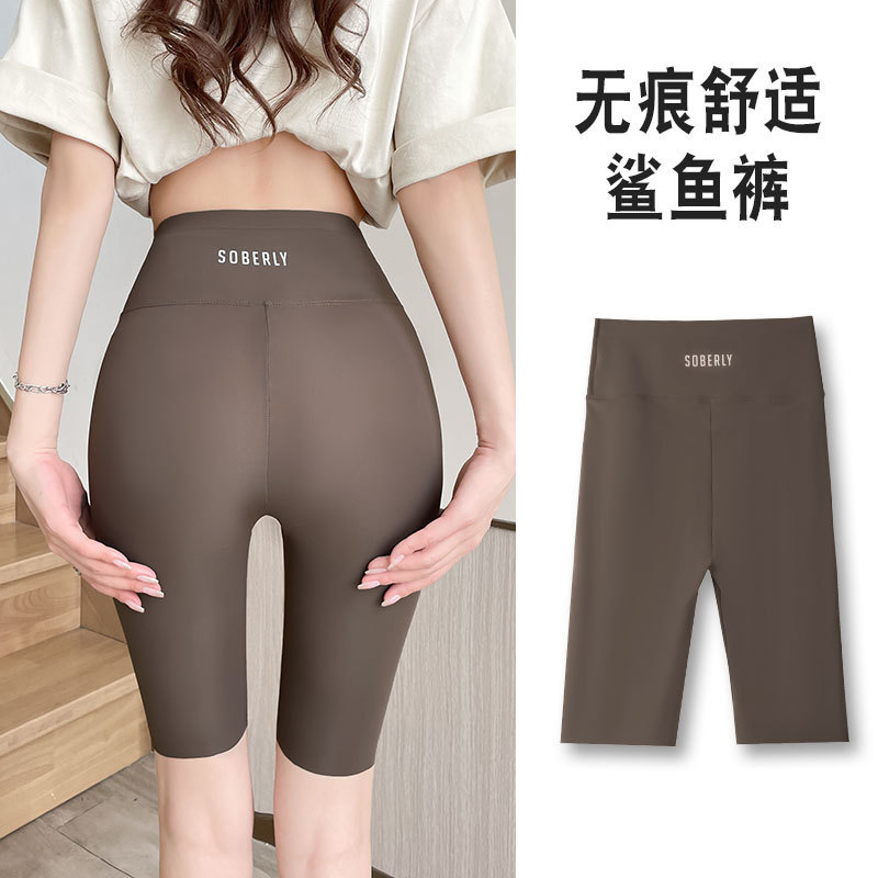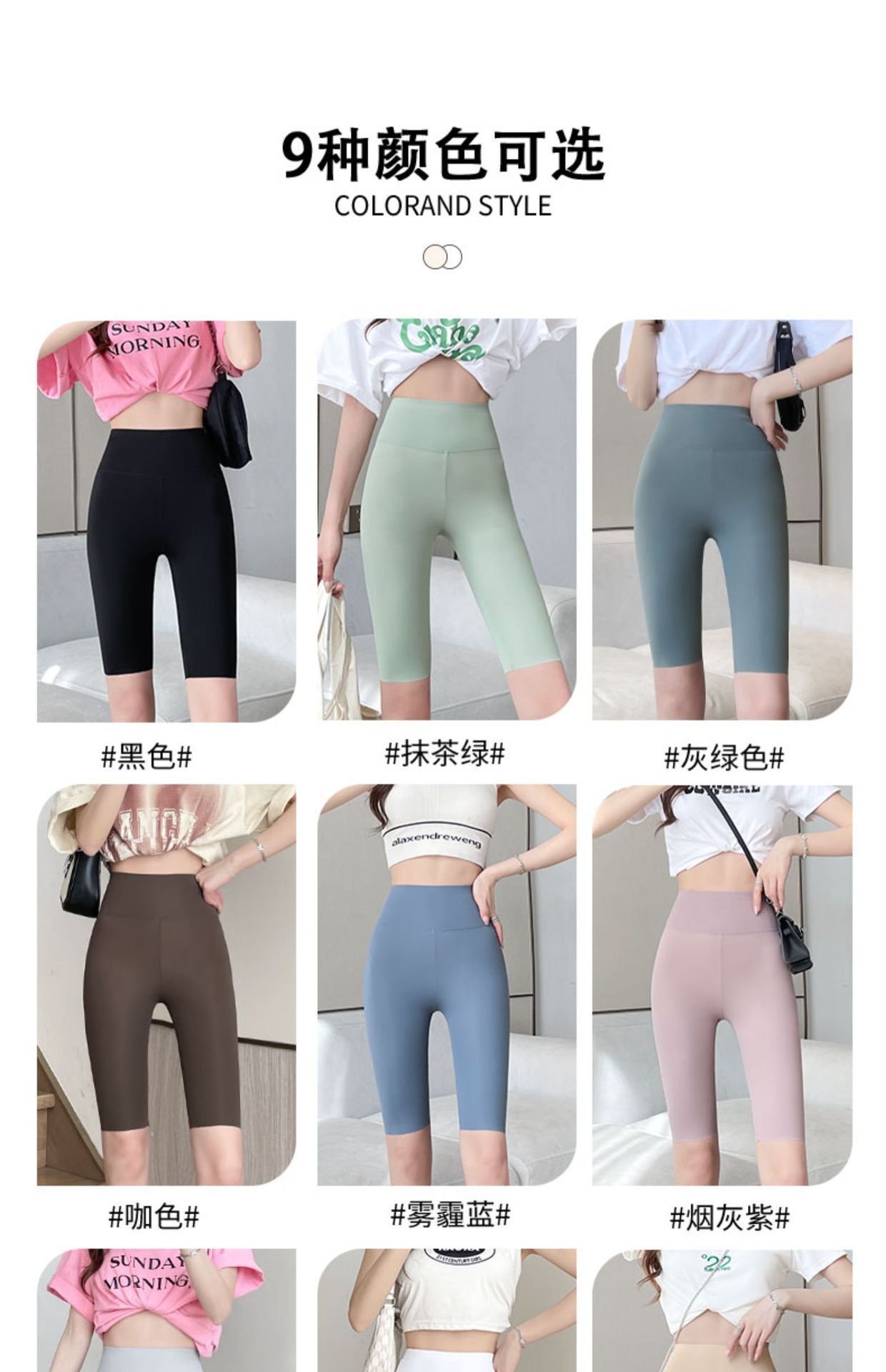 아이스 실크 5 점 상어 바지 여성 외복 여름 얇은 높은 허리 배 착색 바비 라이딩 요가 베이스 반바지스토어 가기
