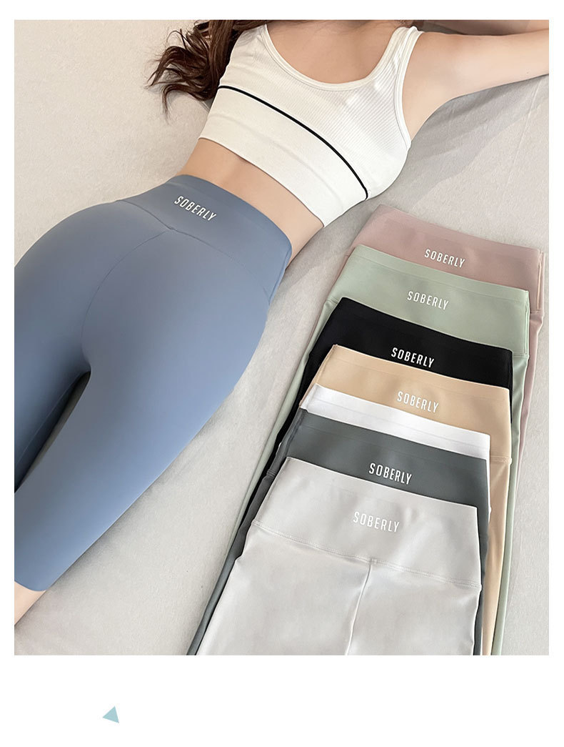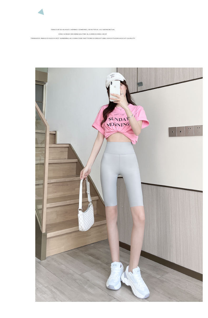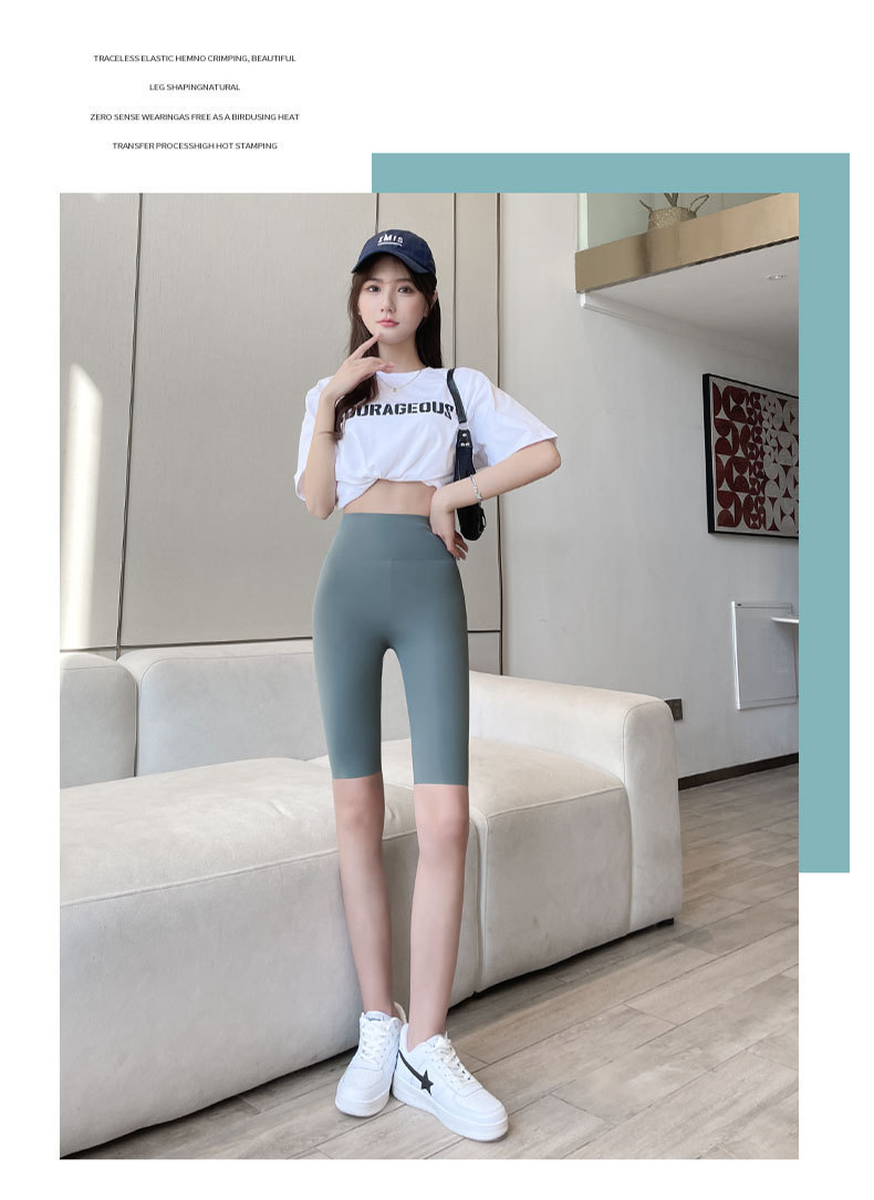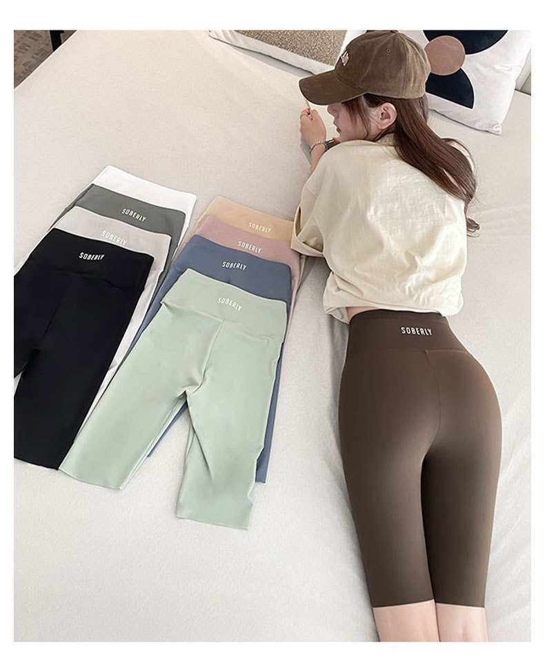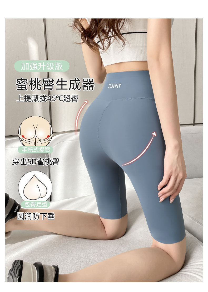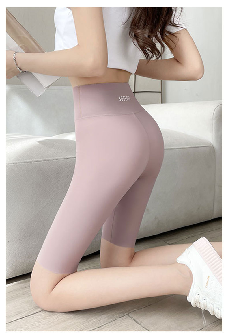 아이스 실크 5 점 상어 바지 여성 외복 여름 얇은 높은 허리 배 착색 바비 라이딩 요가 베이스 반바지스토어 가기