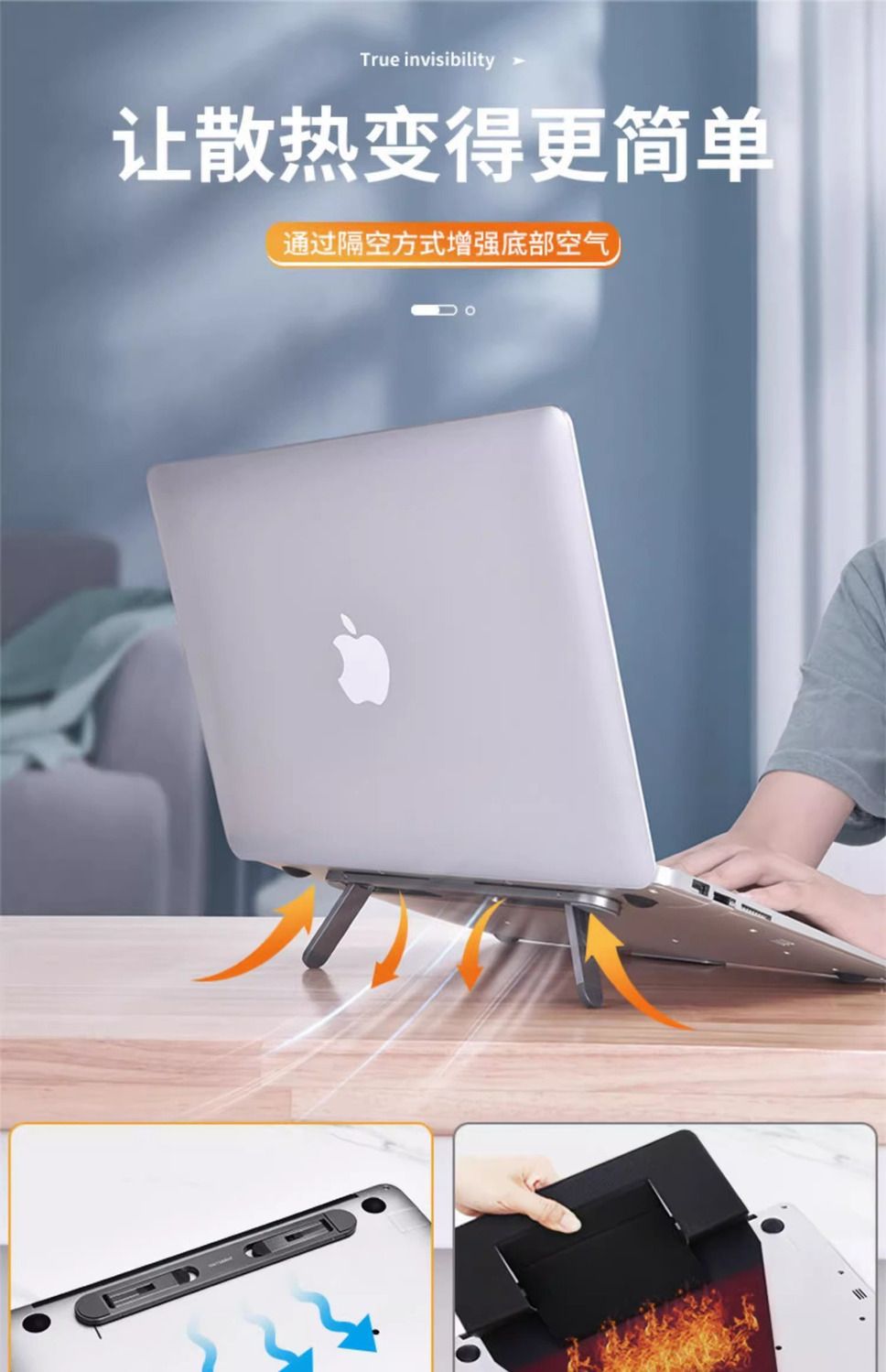 휴대용 금속 노트북 냉각 크리 에이 티브 정지 브래킷 밝은 기어 높이 조정 미니 보이지 않는 접이식