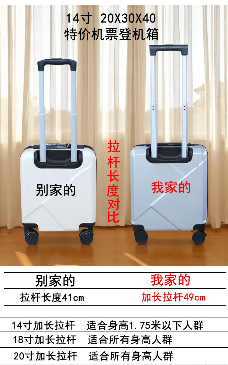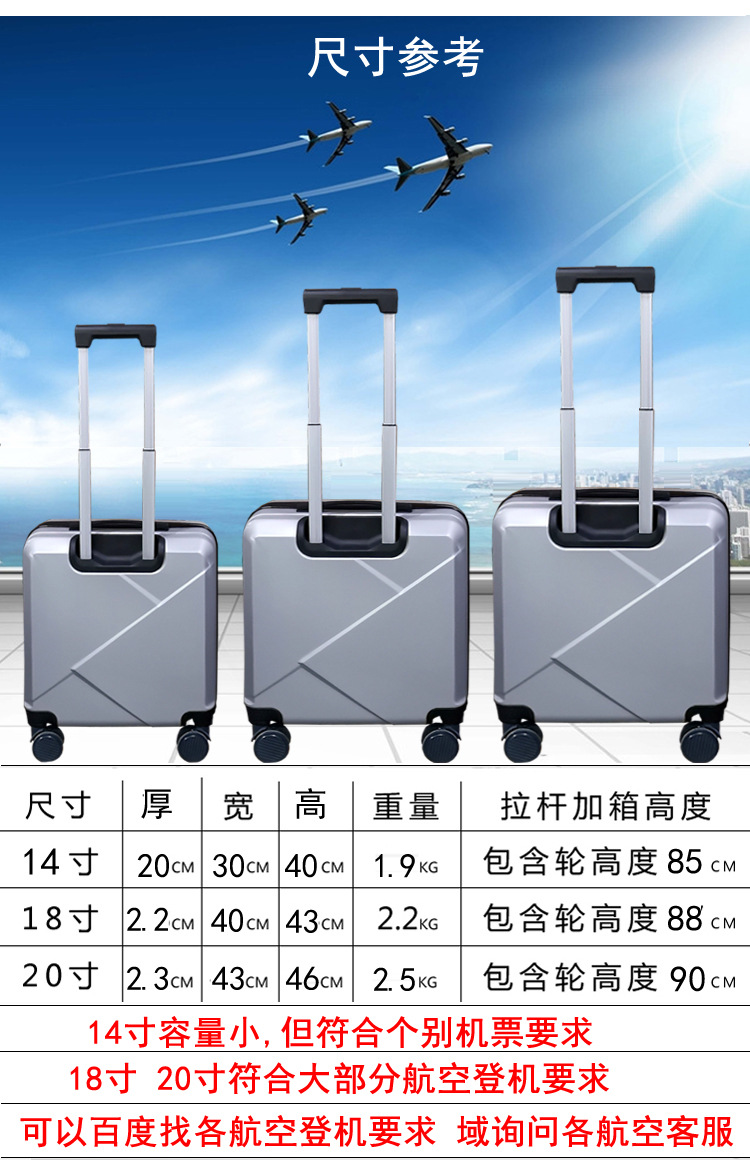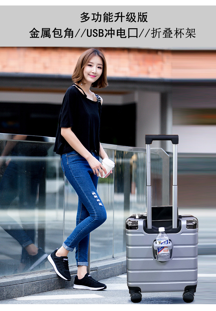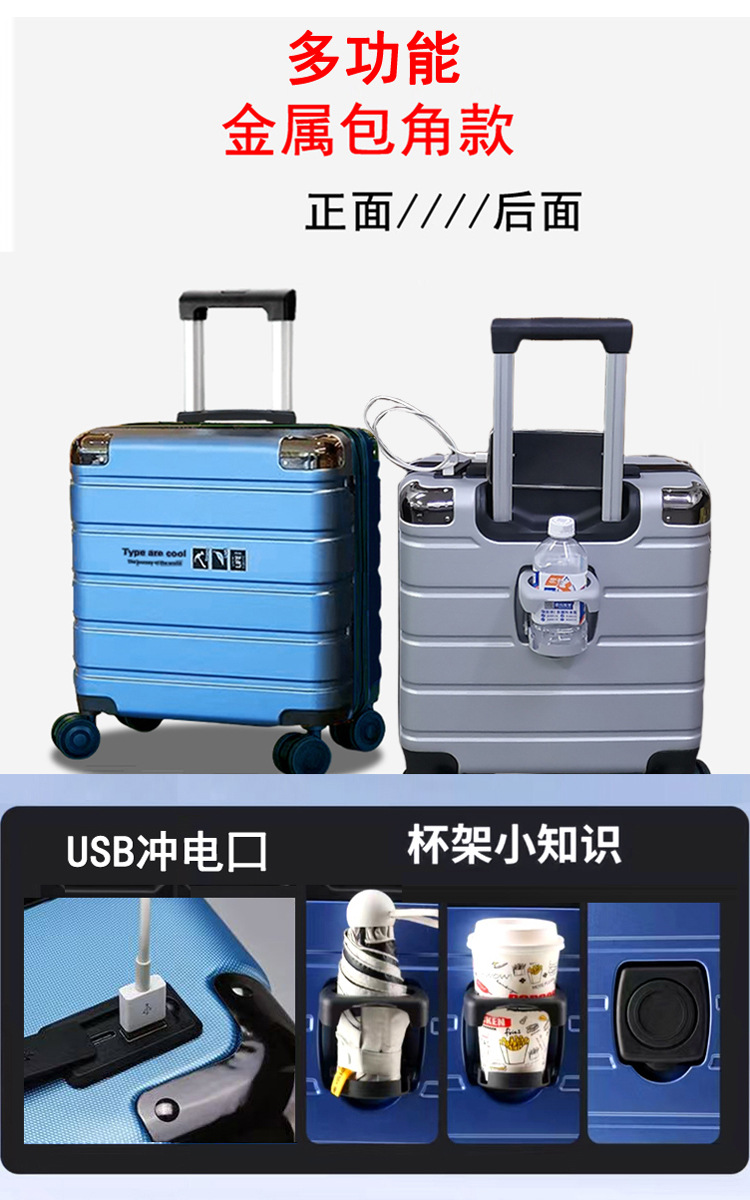18inch 남녀공용 탑승용 캐리어, 수하물 없이 기내 반입 가능, 소형 경량 트롤리 비밀번호 사각형 20