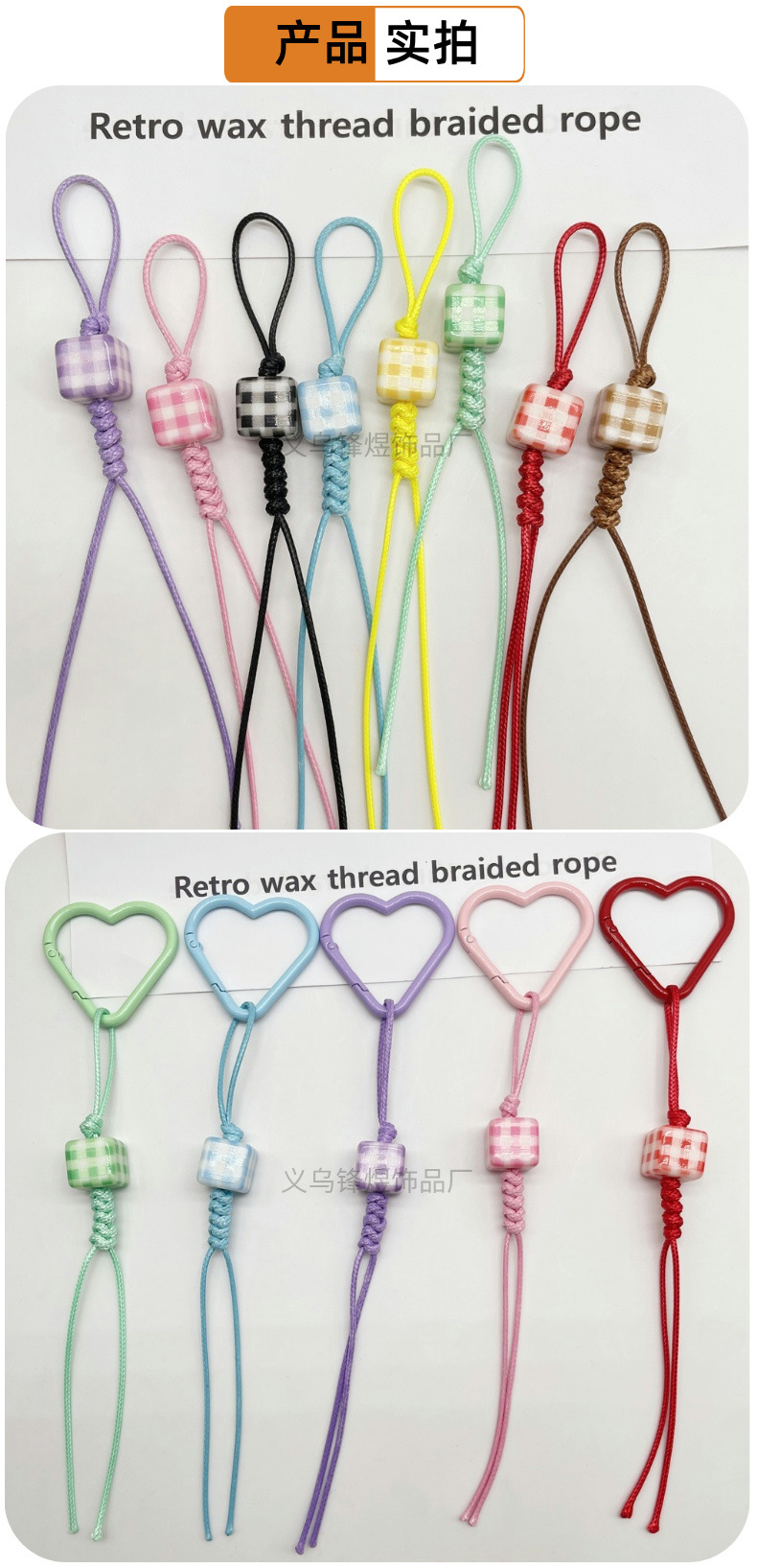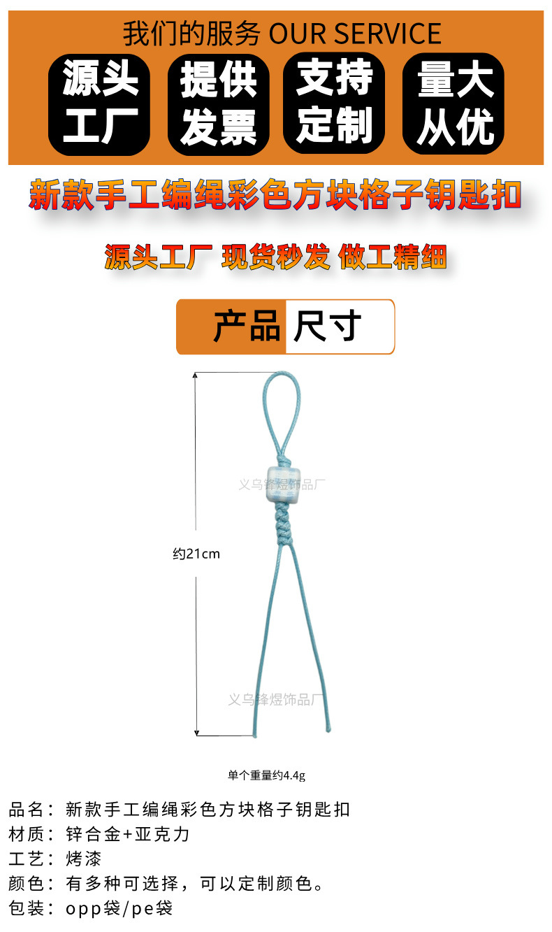 새로운 수제 꼰 로프 컬러 사각형 체크 무늬 키 체인 가방 펜던트 자동차 액세서리 DIY 구슬 액세서리스토어 가기