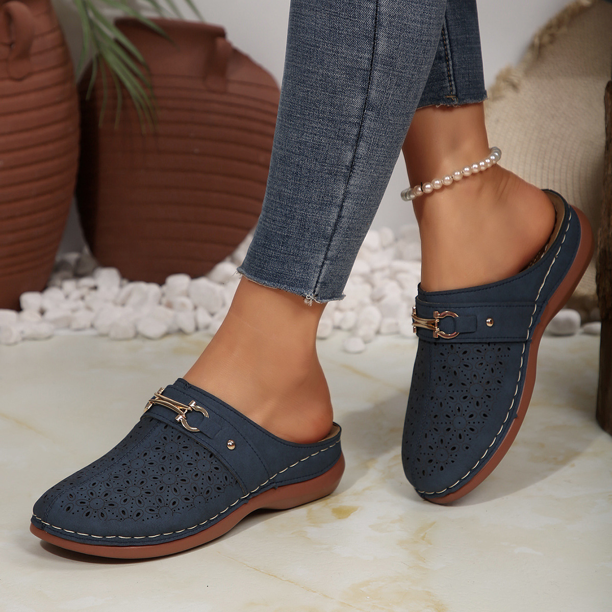 2025 대외 무역 여름 새로운 숙녀 Baotou 두꺼운 슬리퍼 국경 간 플러스 사이즈 캐주얼 Baotou 후면 빈 두꺼운 슬리퍼스토어 가기