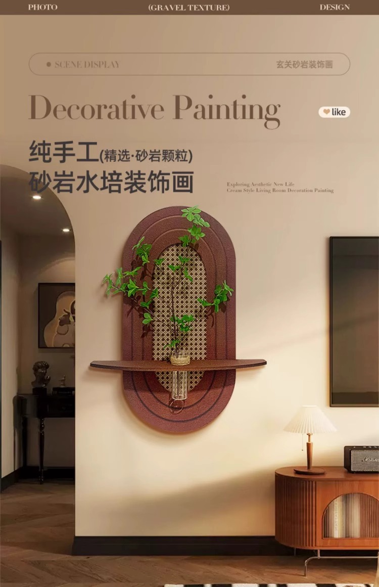 중세 스타일 크리 에이 티브 벽 수경 꽃병 벽걸이 홈 거실 TV 배경 벽 장식 입체 사암 그림스토어 가기