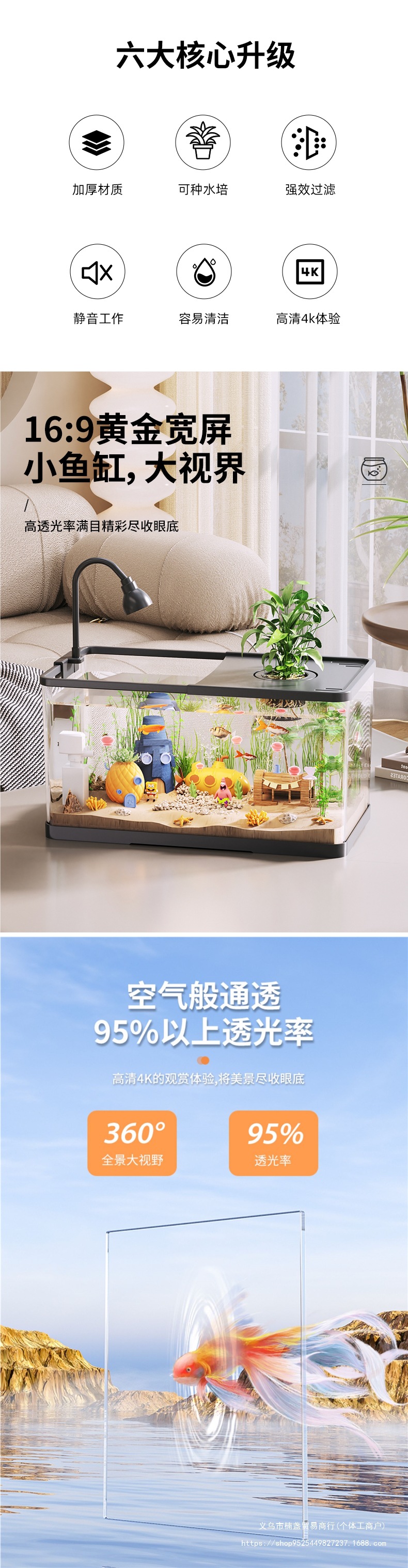 물고기 탱크 작은 거실 생태 조경 필터 산소 만들기 기계 2025 새로운 가정용 탁상용 금붕어 탱크 뚜껑스토어 가기
