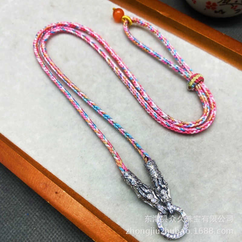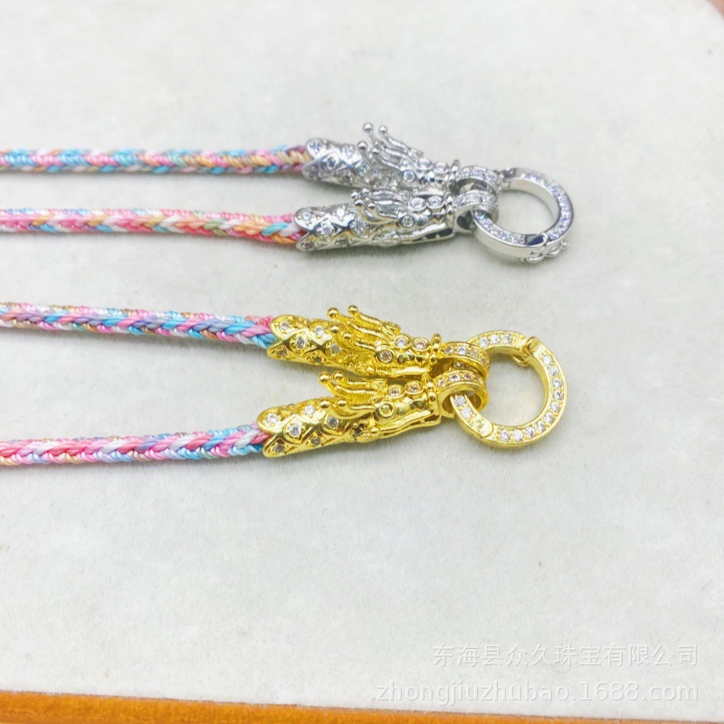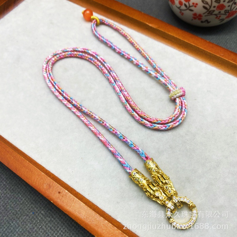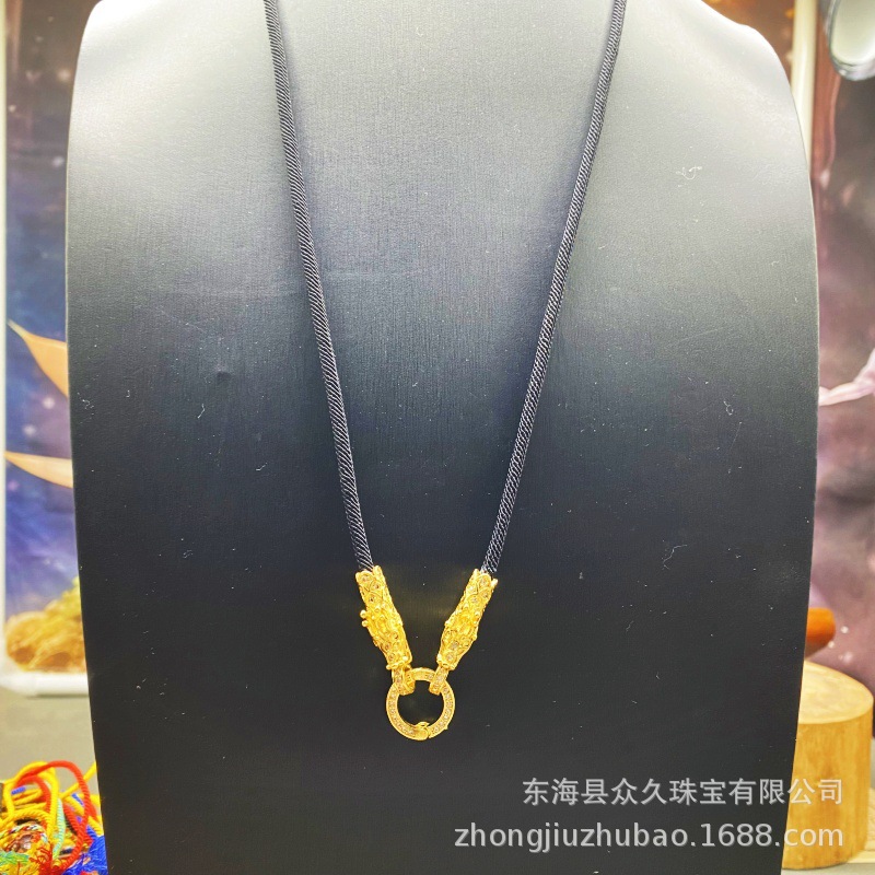 새로운 태국 부처님 부적 체인 Wuye Zakiram 노란색 부의 신 Tangka 목걸이 로프 드래곤 헤드 펜던트 교수형 목 로프