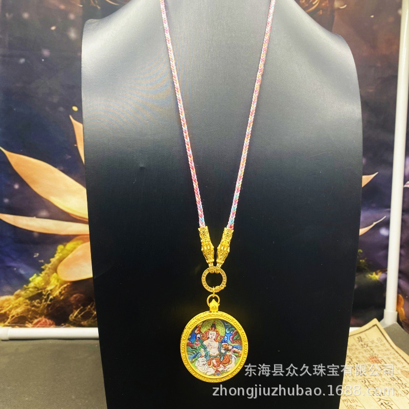새로운 태국 부처님 부적 체인 Wuye Zakiram 노란색 부의 신 Tangka 목걸이 로프 드래곤 헤드 펜던트 교수형 목 로프스토어 가기