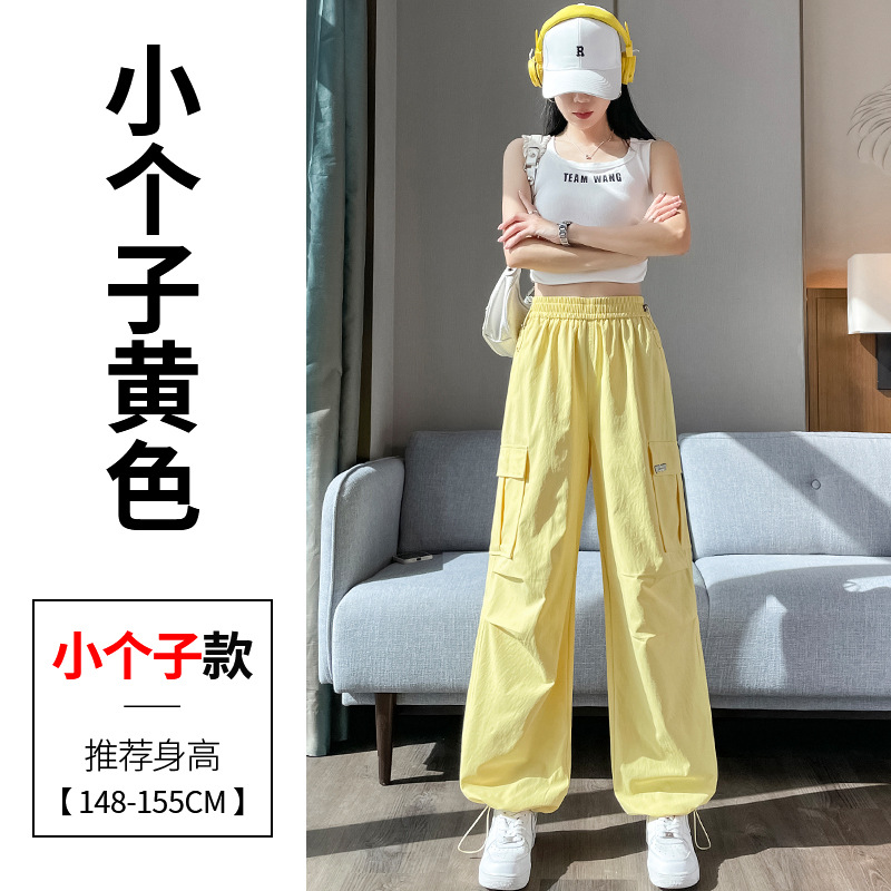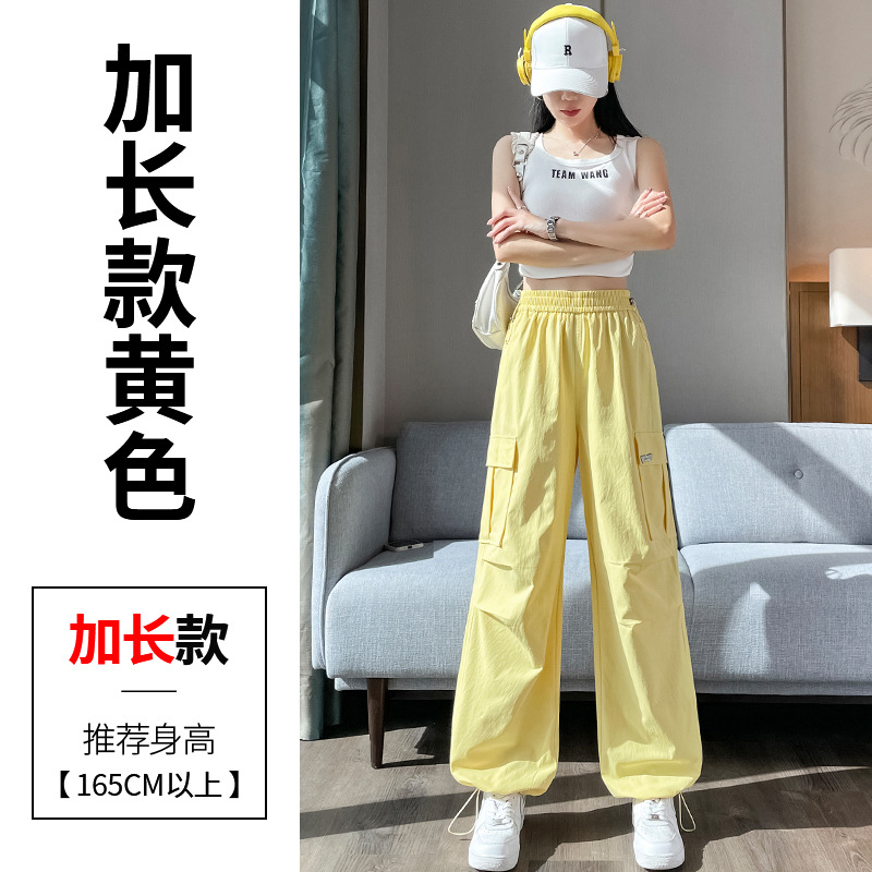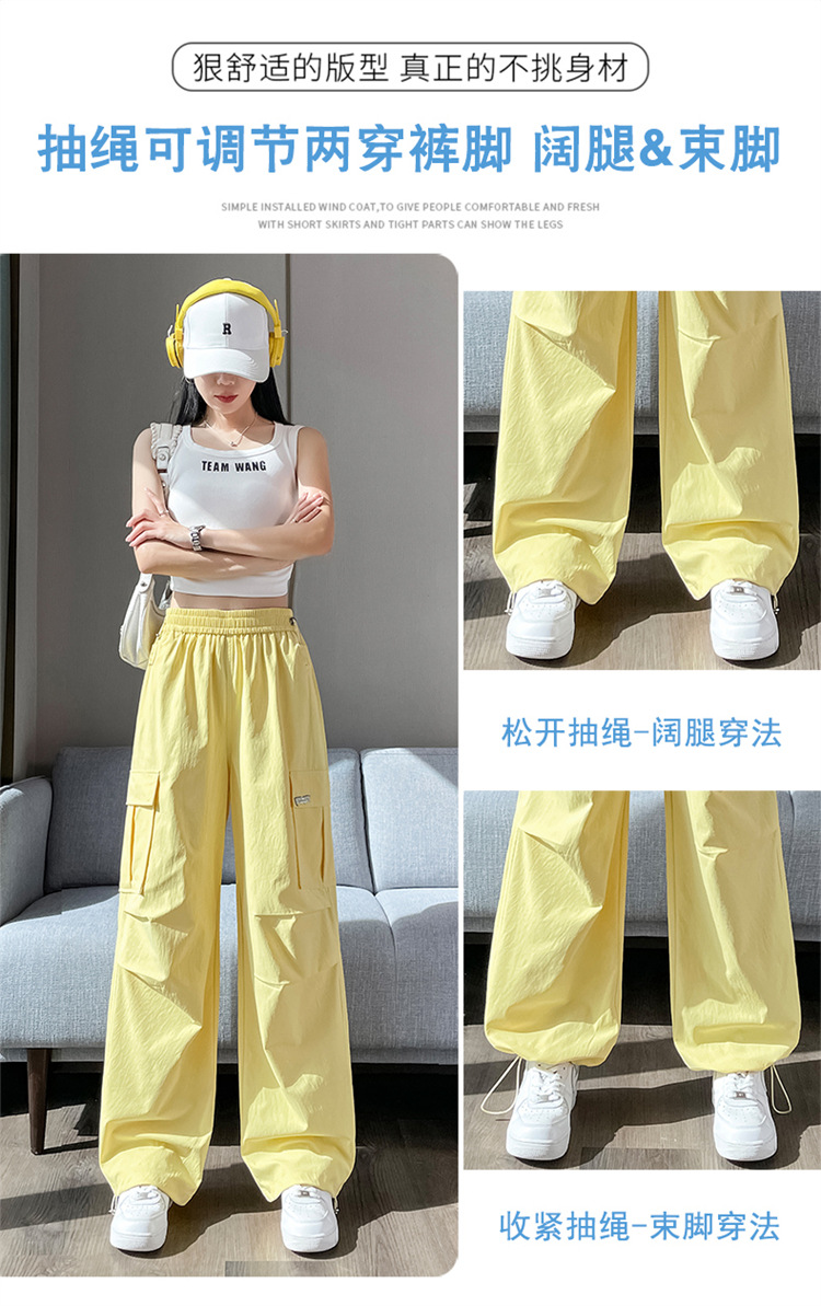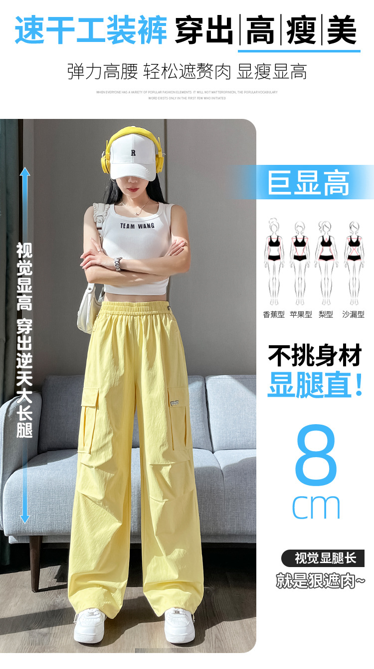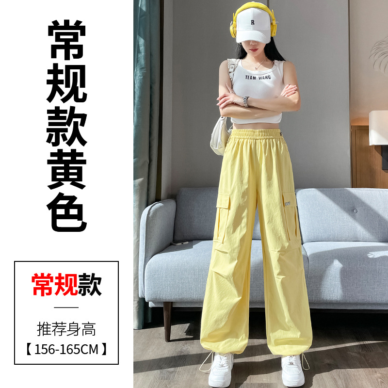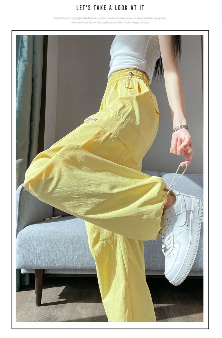 여성용 노란색 속건성 작업복 2025 여름 얇은 캐주얼 스포츠 바지 멋진 미국 등산 와이드 팬츠스토어 가기