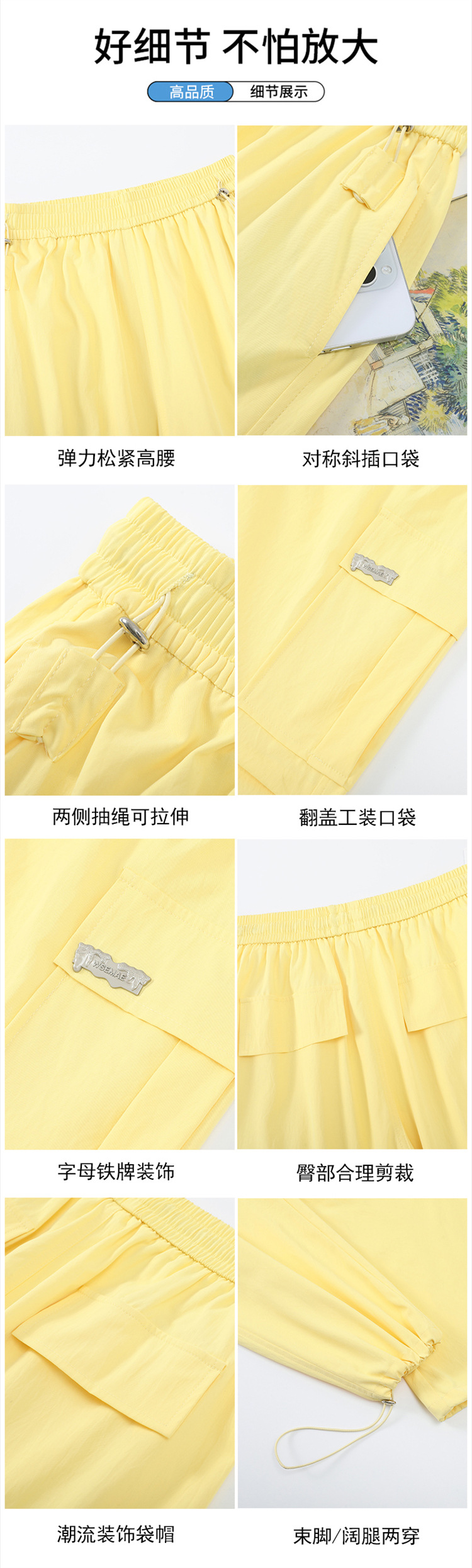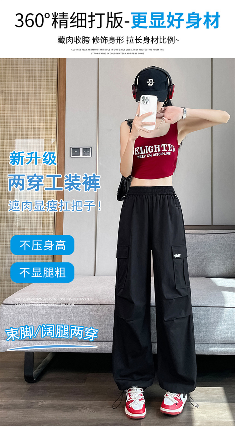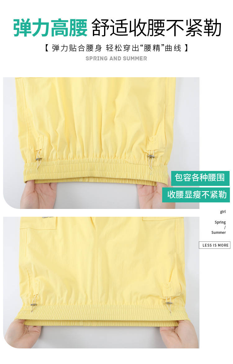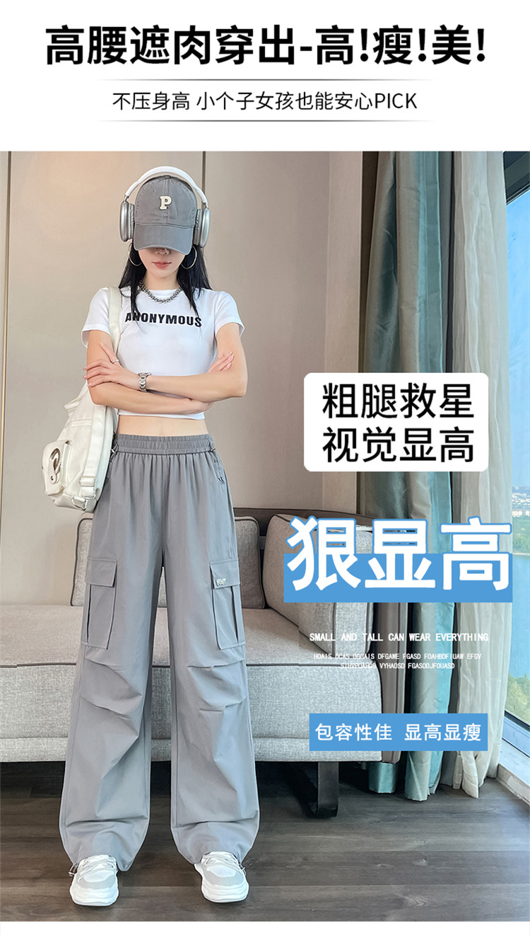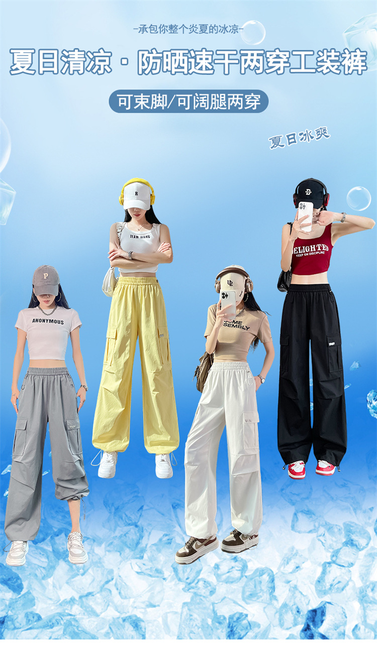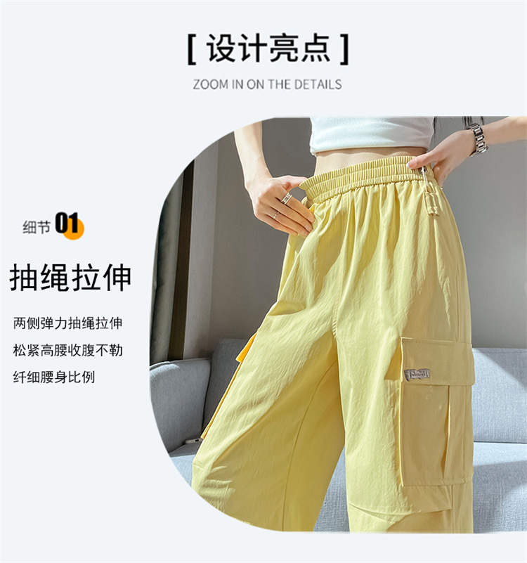 여성용 노란색 속건성 작업복 2025 여름 얇은 캐주얼 스포츠 바지 멋진 미국 등산 와이드 팬츠스토어 가기