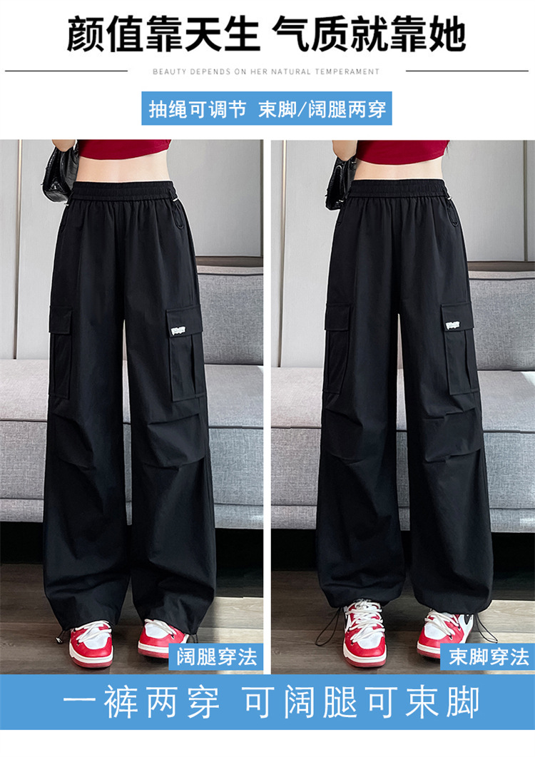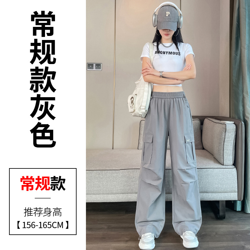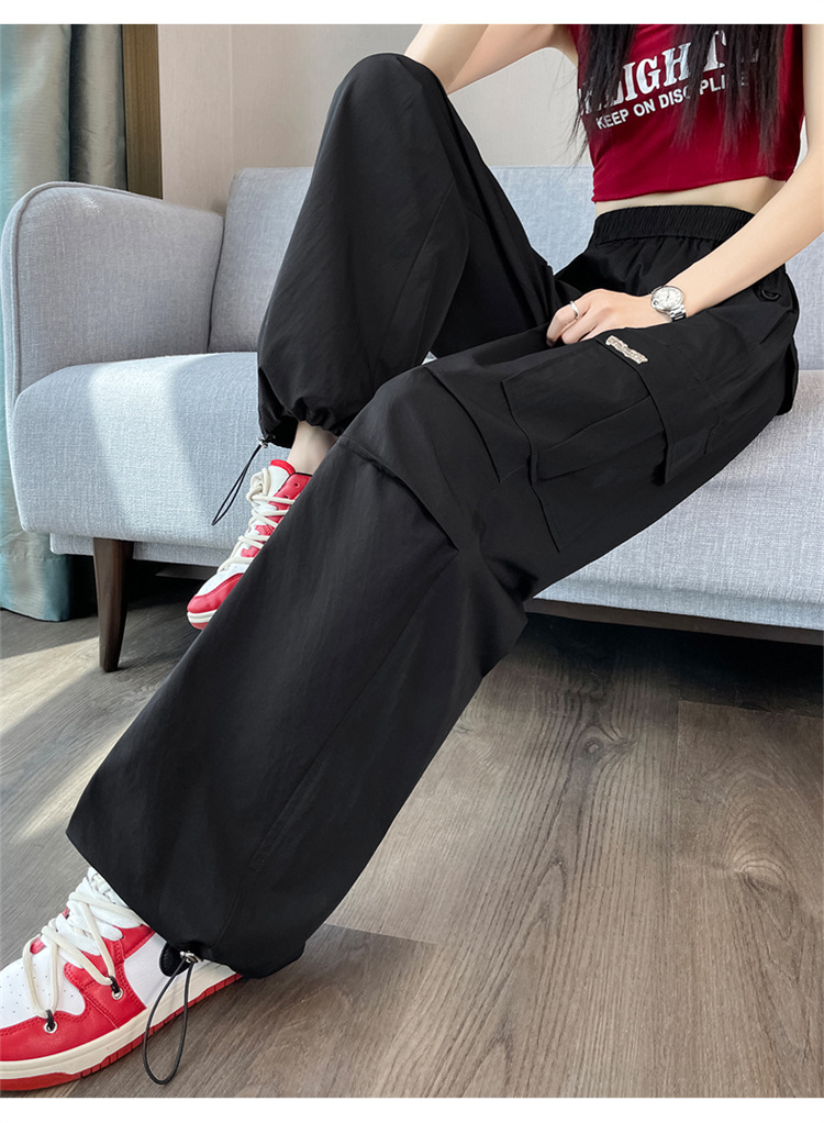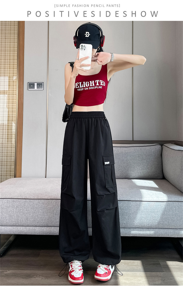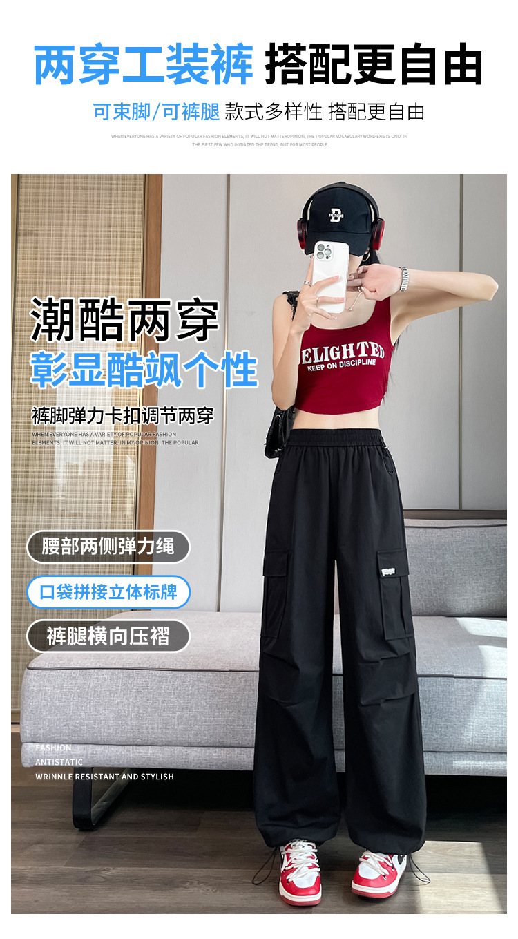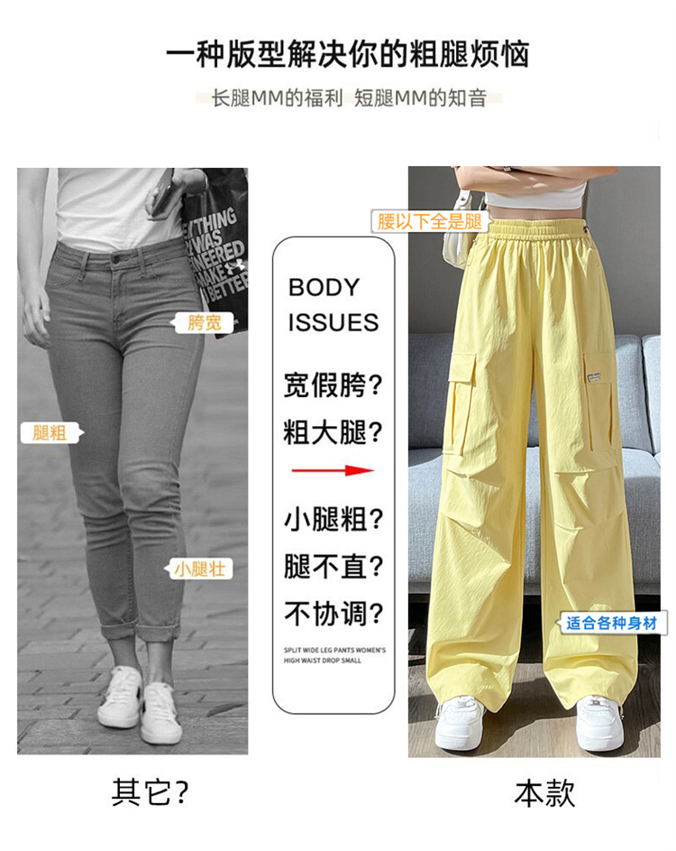 여성용 노란색 속건성 작업복 2025 여름 얇은 캐주얼 스포츠 바지 멋진 미국 등산 와이드 팬츠스토어 가기