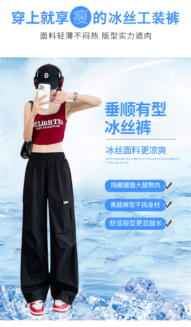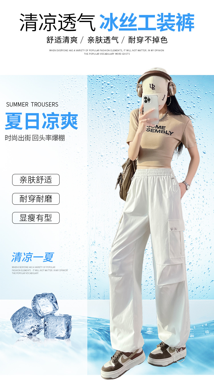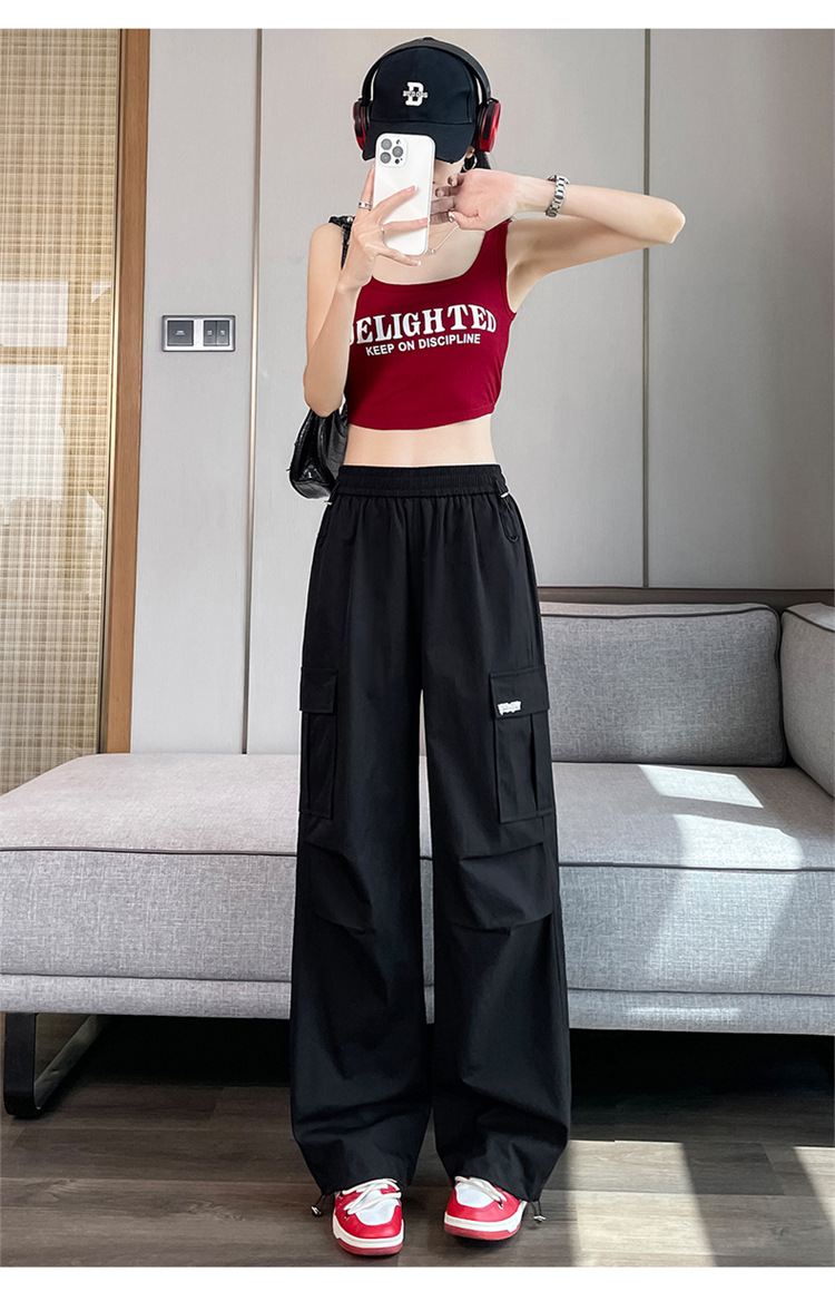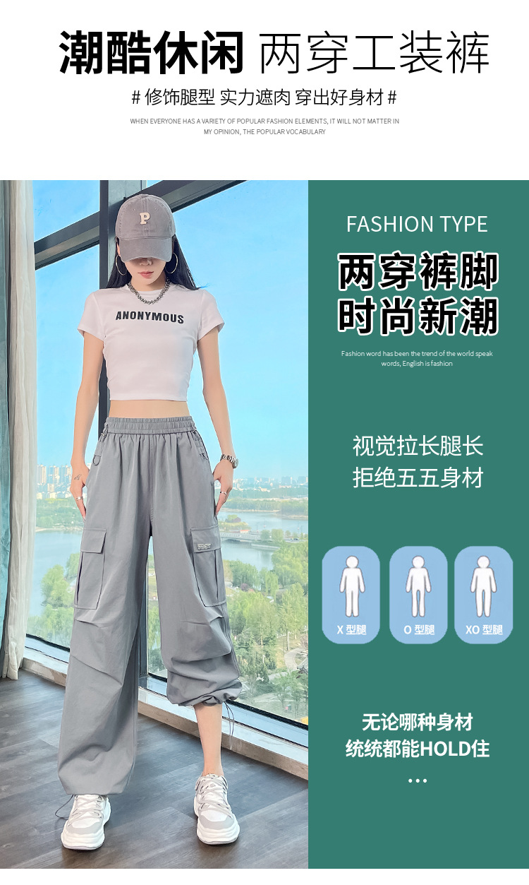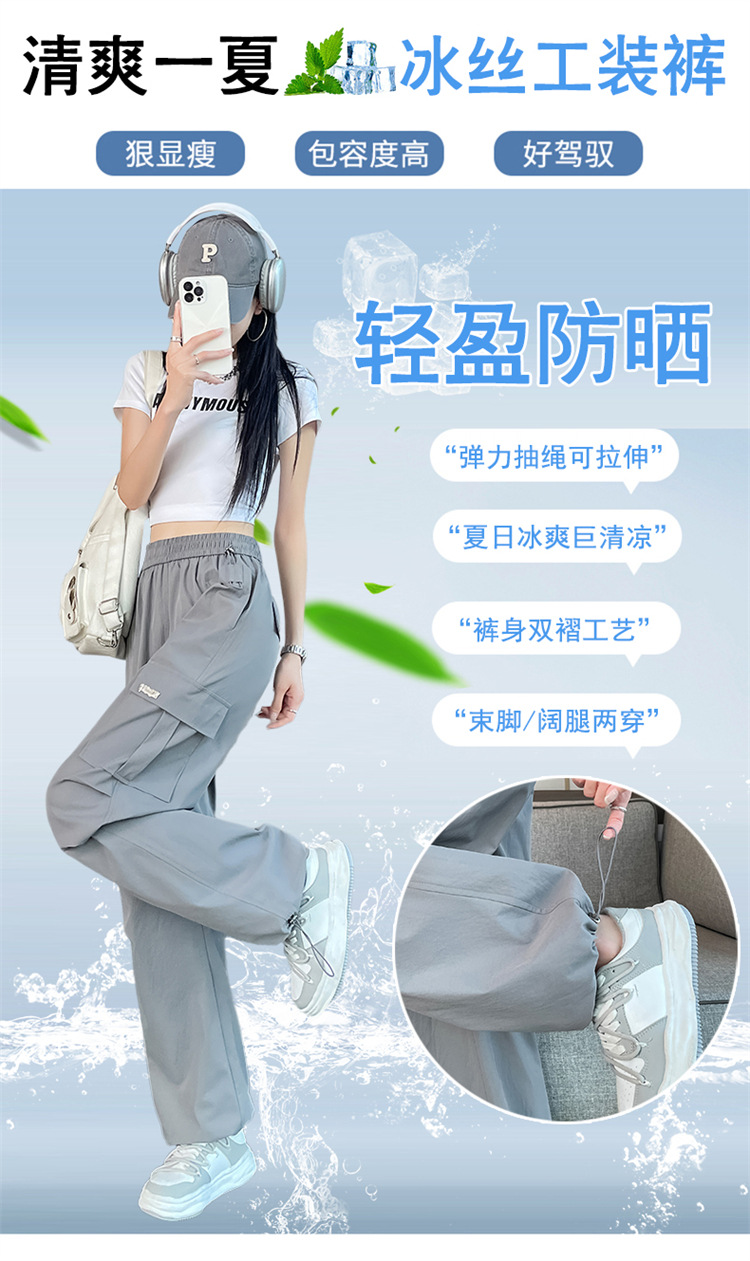 여성용 노란색 속건성 작업복 2025 여름 얇은 캐주얼 스포츠 바지 멋진 미국 등산 와이드 팬츠스토어 가기