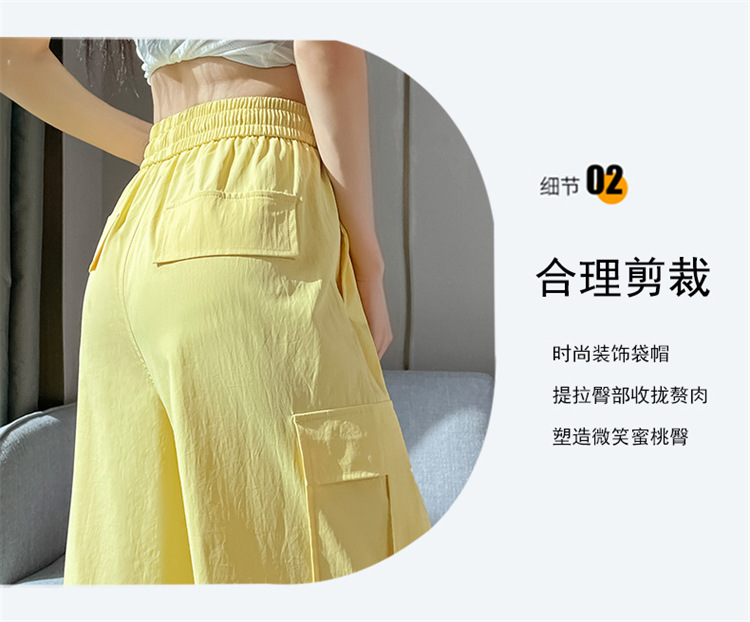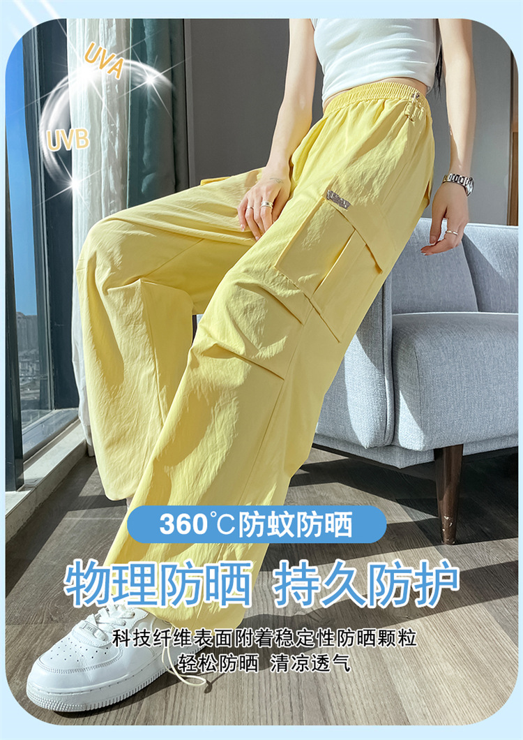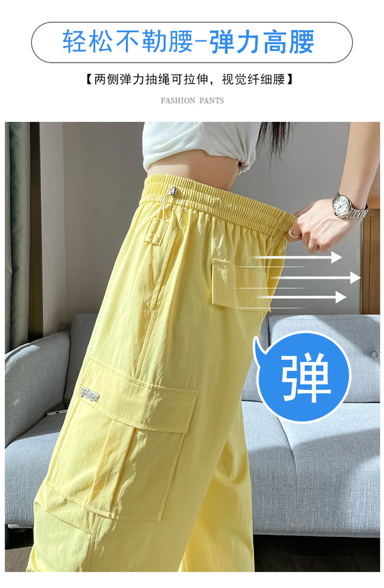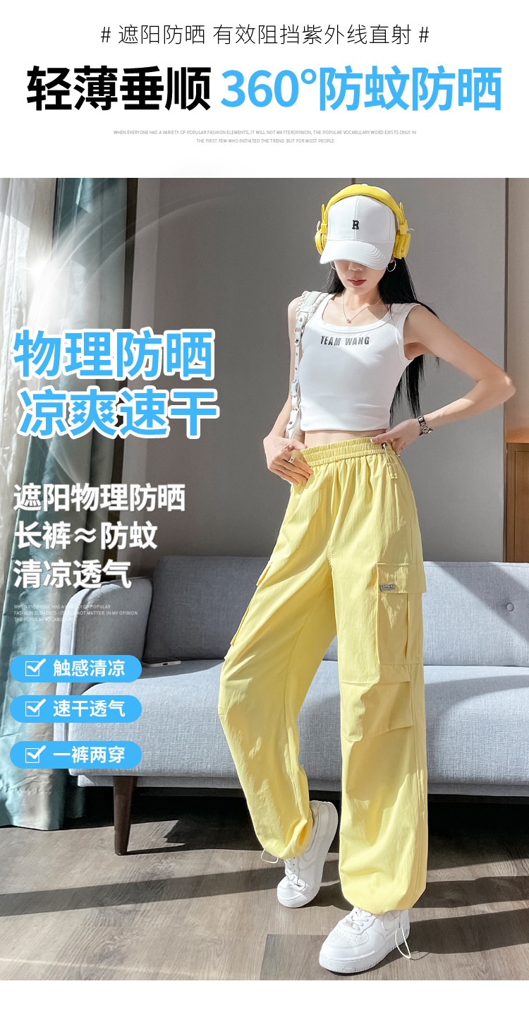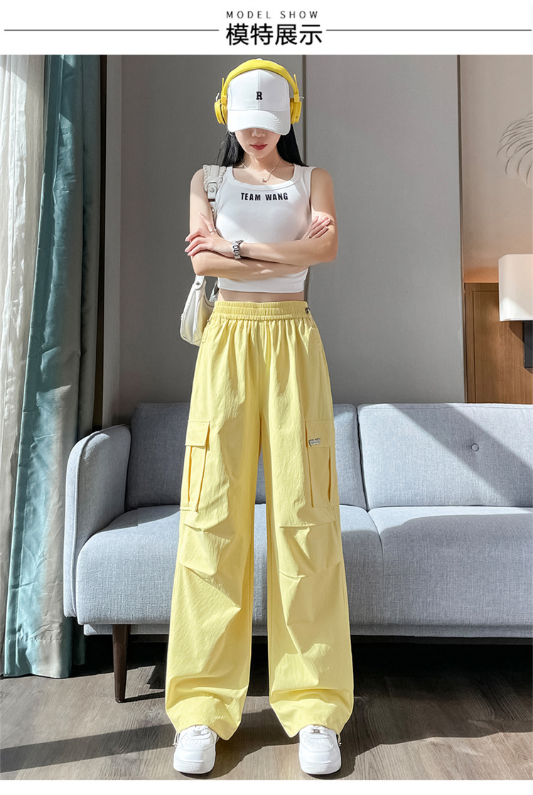 여성용 노란색 속건성 작업복 2025 여름 얇은 캐주얼 스포츠 바지 멋진 미국 등산 와이드 팬츠