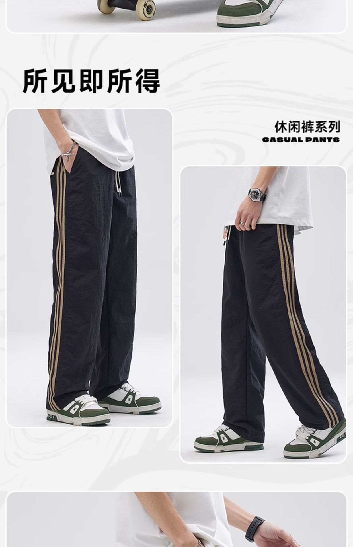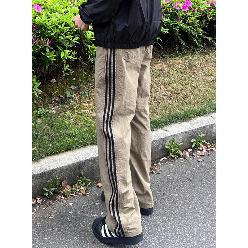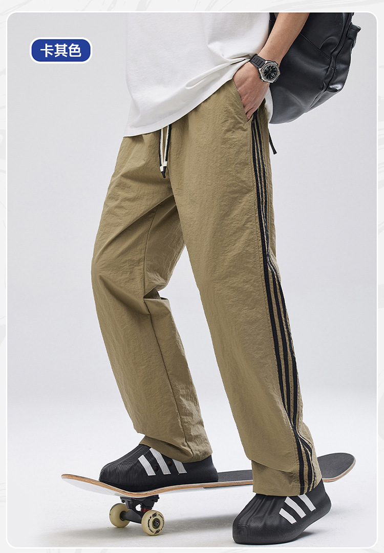 크로스보더 아메리칸 사이드 스트라이프 속건성 남성용 여름 얇은 바지 루즈한 3줄 스트라이프 스포츠 캐주얼 바지 트렌디스토어 가기