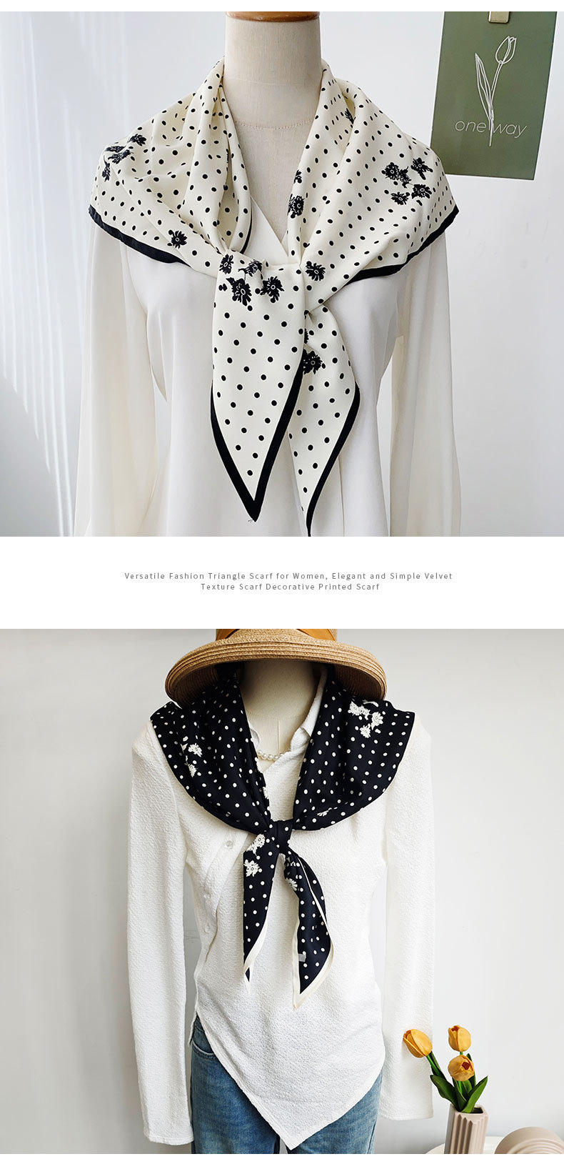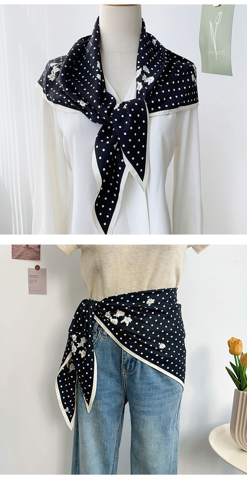 간단한 하이 엔드 센스 웨이브 도트 인쇄 삼각형 타월 한국 스타일 문학 스타일 여성 패션 통근 스카프 얇은 삼각형 수건