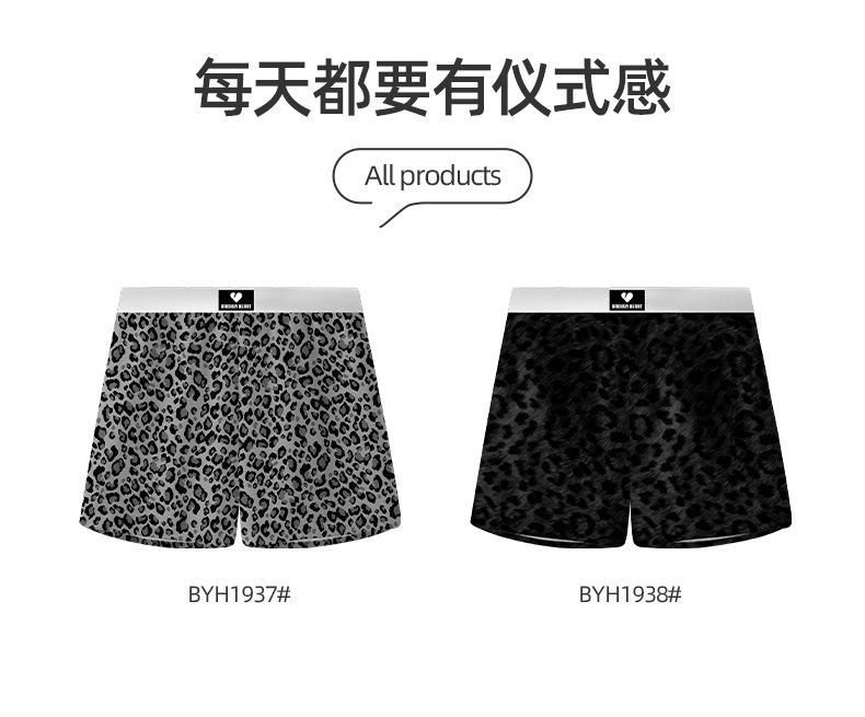 여름 폭발 레오파드 무늬 남자 아로 바지 아이스 실크 네 모서리 소년 홈 레저 느슨한 속옷 남성 공장 도매스토어 가기