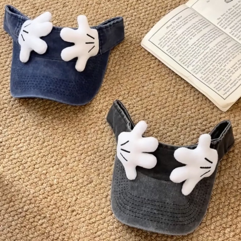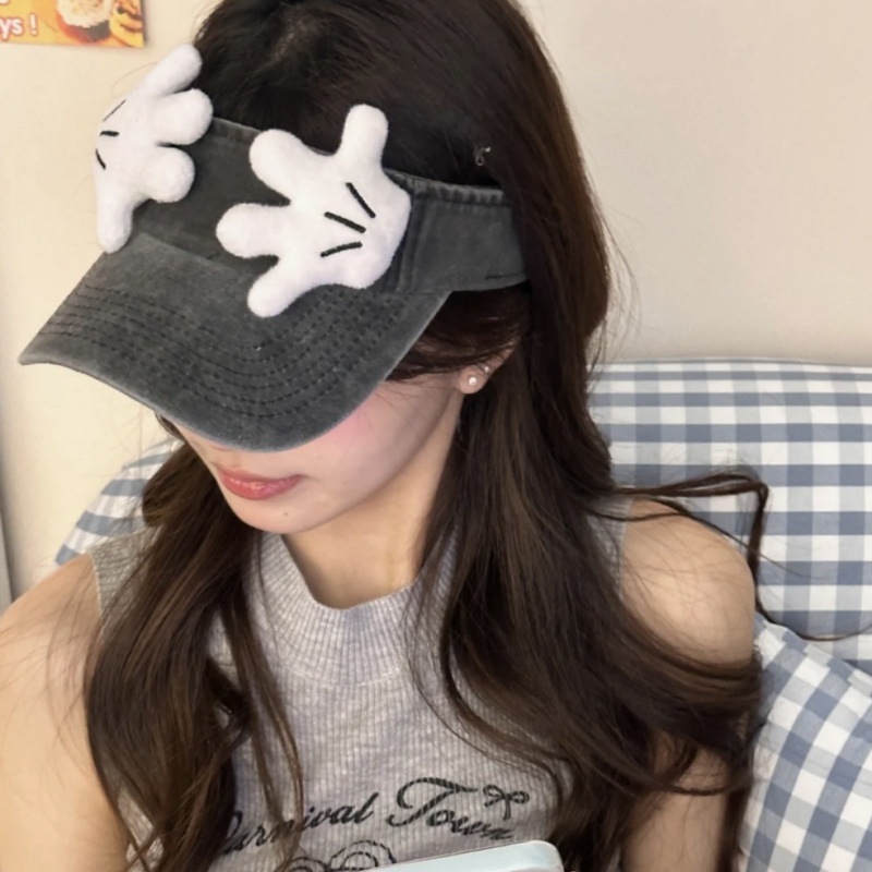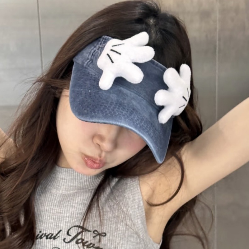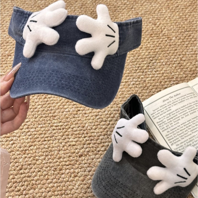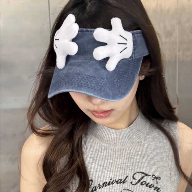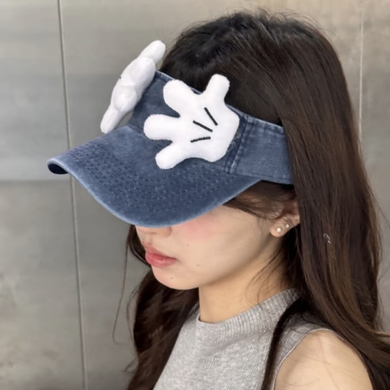 귀여운 데님 미키 팜 선 스크린 모자 여름 귀여운 안티 UV 선 스크린 인터넷 인기 자전거 야외 만화 여성스토어 가기